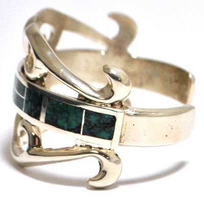 Old Pawn Spider Web Kingman Turquoise Inlay Sterling Silver Cuff Bracelet