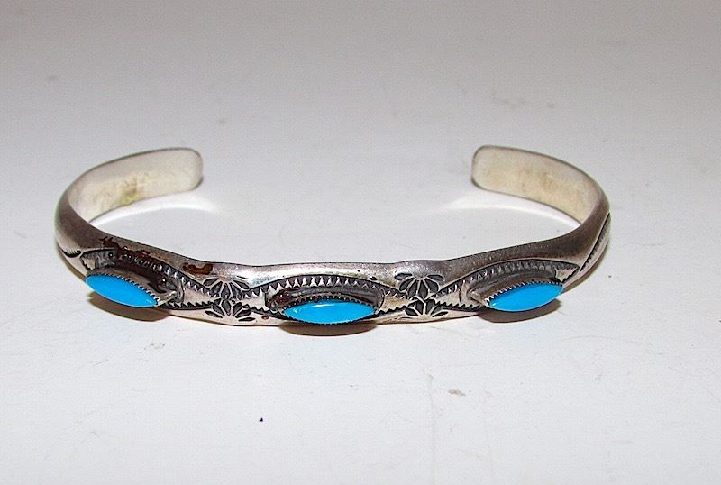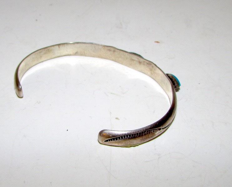 Old Pawn Sterling Turquoise Zuni Cuff Bracelet, unmarked and has been tested for silver content. 6"-6 1/2" inside sircumference. The cuff can be carefully adjusted.