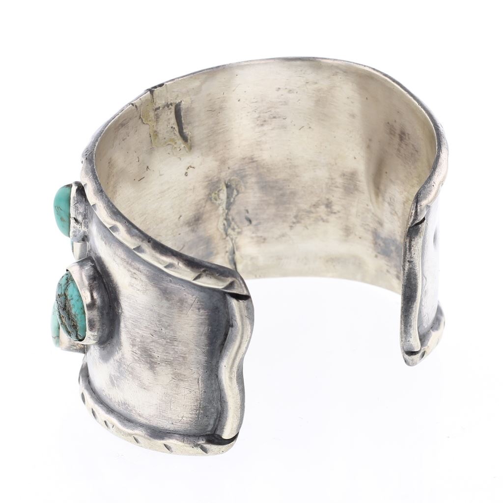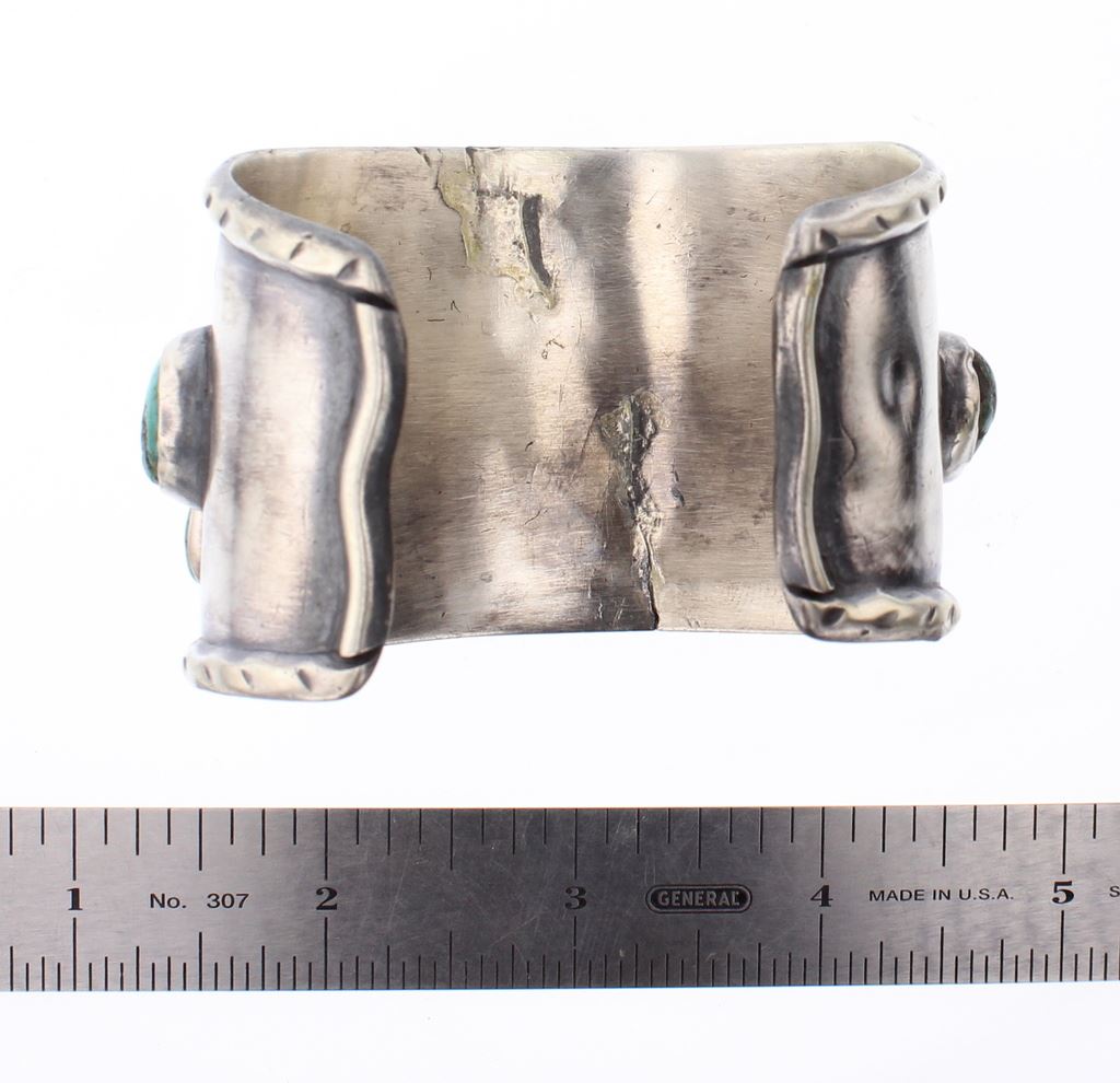 Old Pawn Turquoise Cluster Bracelet | Sterling Silver | Genuine Turquoise | Navajo Native American Southwest Indian Jewelry | Dimensions: Bracelet: 6" inner, 1.25" gap, 7.25" total, 2" face width, 11mm x 15mm center stone | Weight:100.9 Grams, |