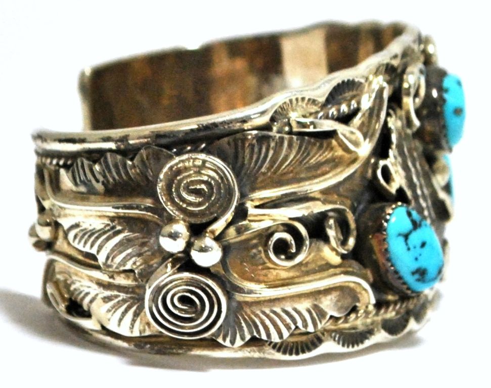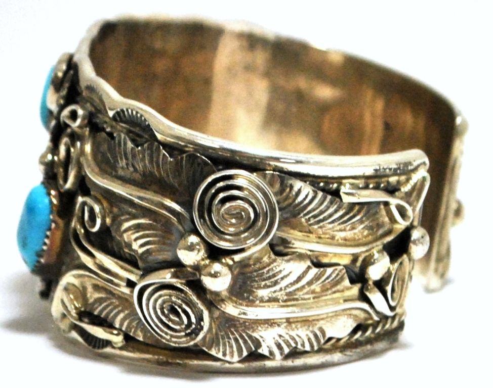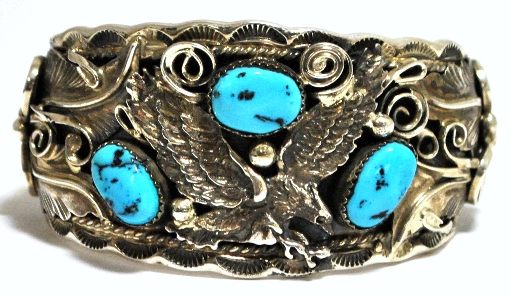 Old Pawn Turquoise Flying Eagle Sterling Silver Cuff Bracelet - Allen Chee