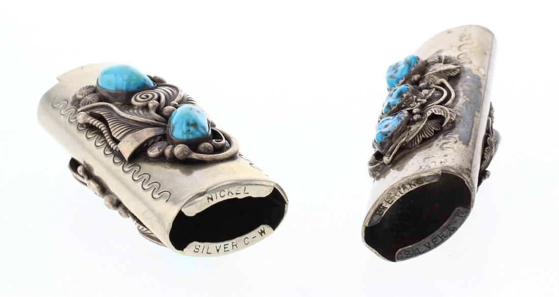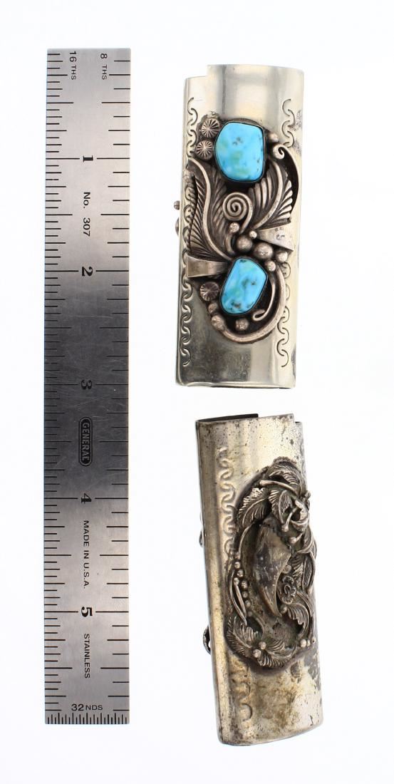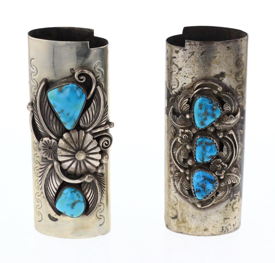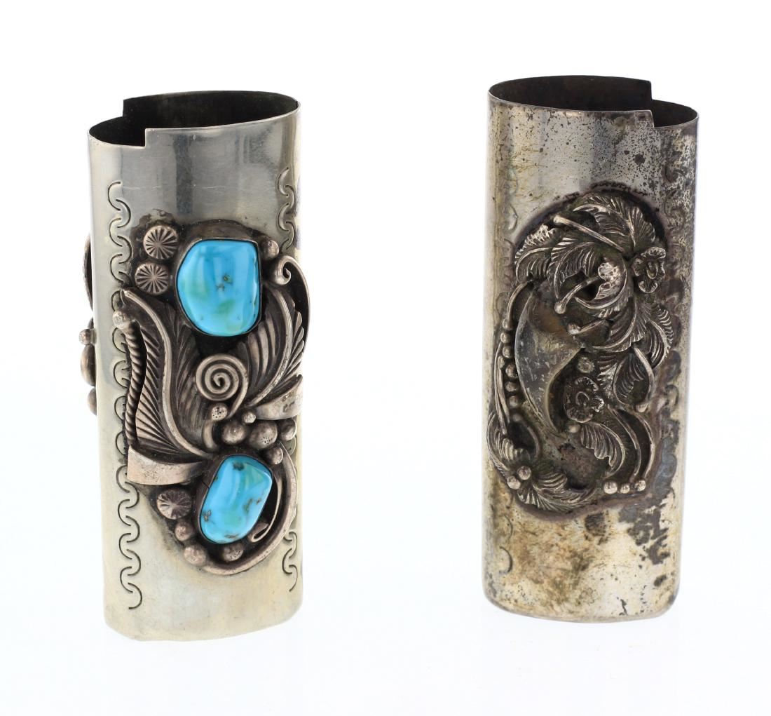 Sterling Silver | Genuine Turquoise | Old Pawn Turquoise Lighter Case Set of Two | Navajo Native American Southwest Indian Jewelry | Weight:67.4 Grams, | Dimensions: 2 - Lighter Cases: .75" x 1" x 2.75", 9mm x 11mm bottom stone (for both) |