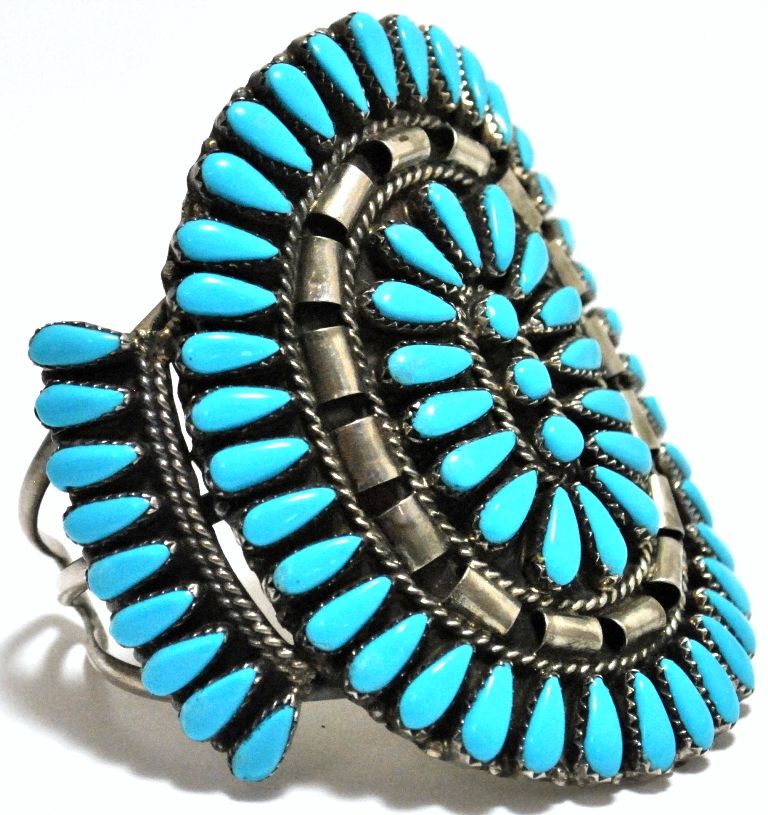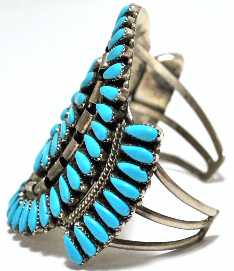 Old Pawn Turquoise Needlepoint Cluster Sterling Silver Cuff Bracelet - D?