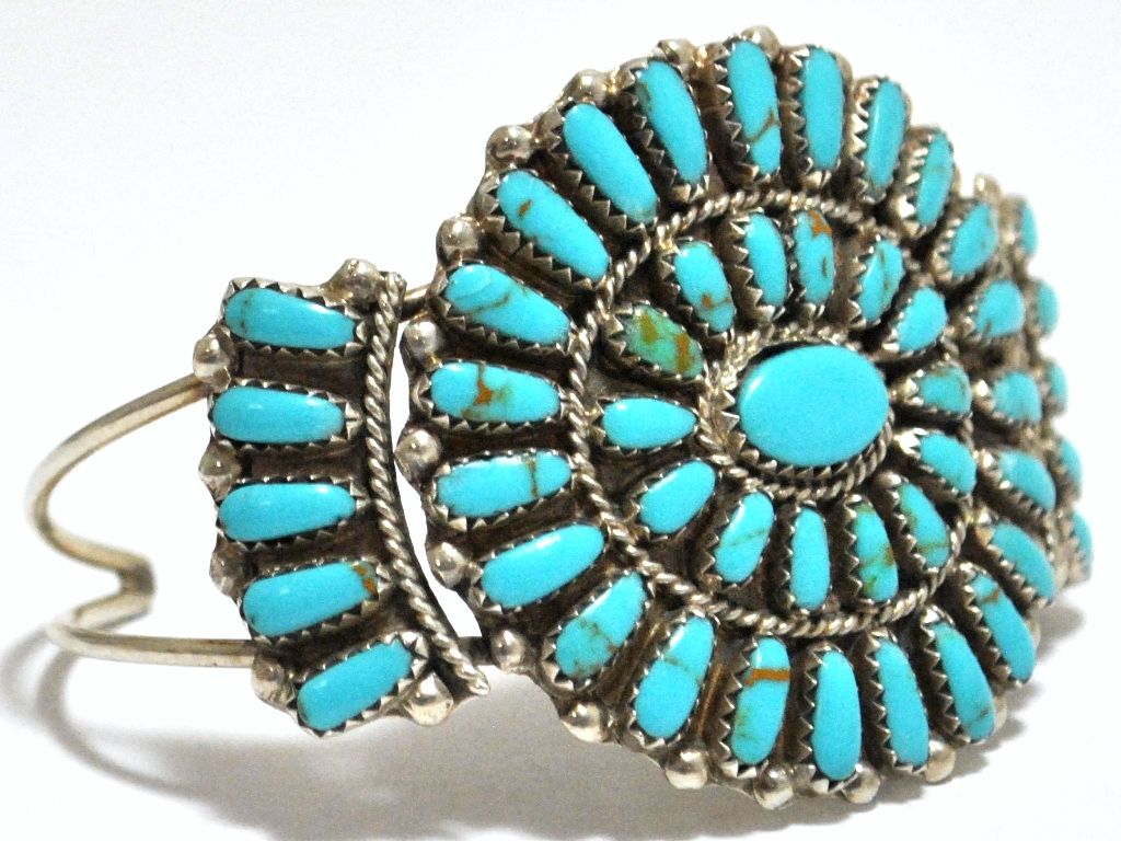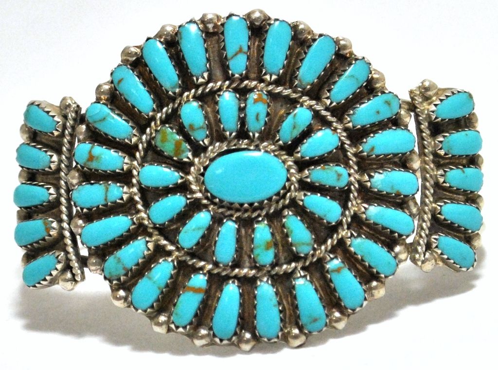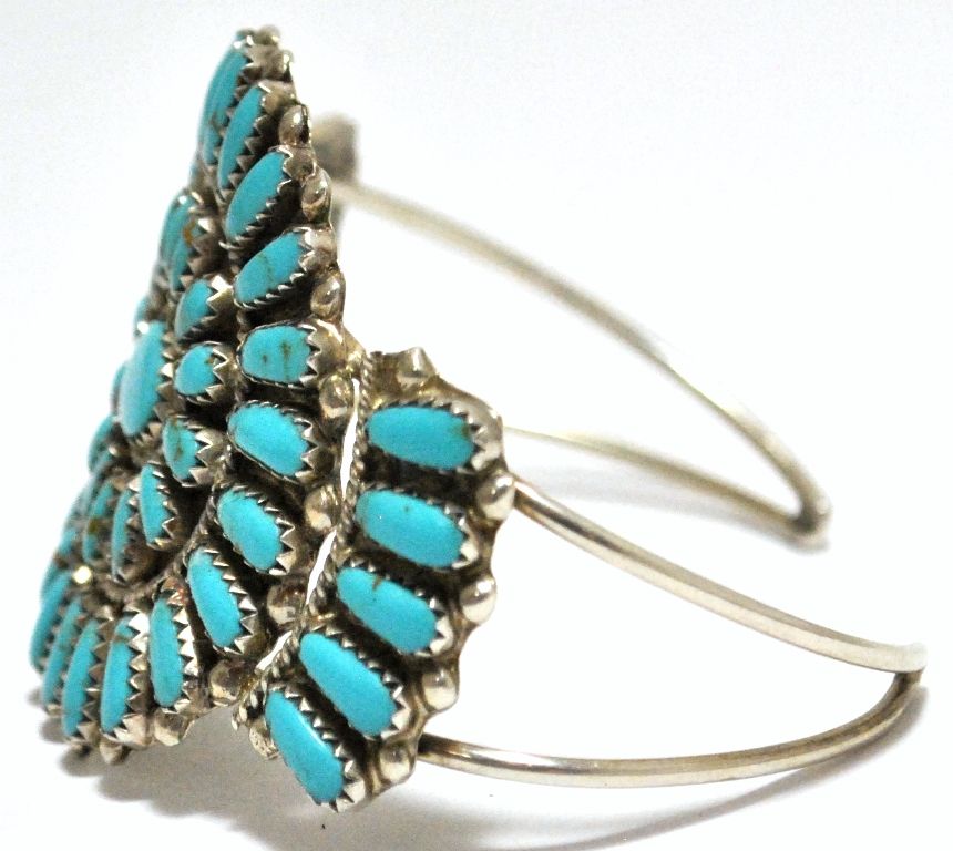 Old Pawn Turquoise Needlepoint Cluster Sterling Silver Cuff Bracelet - PB