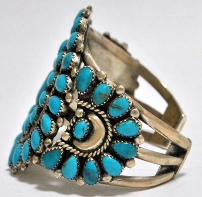 Old Pawn Turquoise Needlepoint Sterling Silver Cuff Bracelet - VB