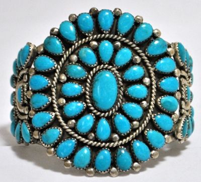 Old Pawn Turquoise Needlepoint Sterling Silver Cuff Bracelet - VB