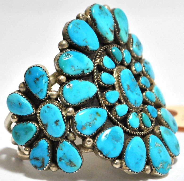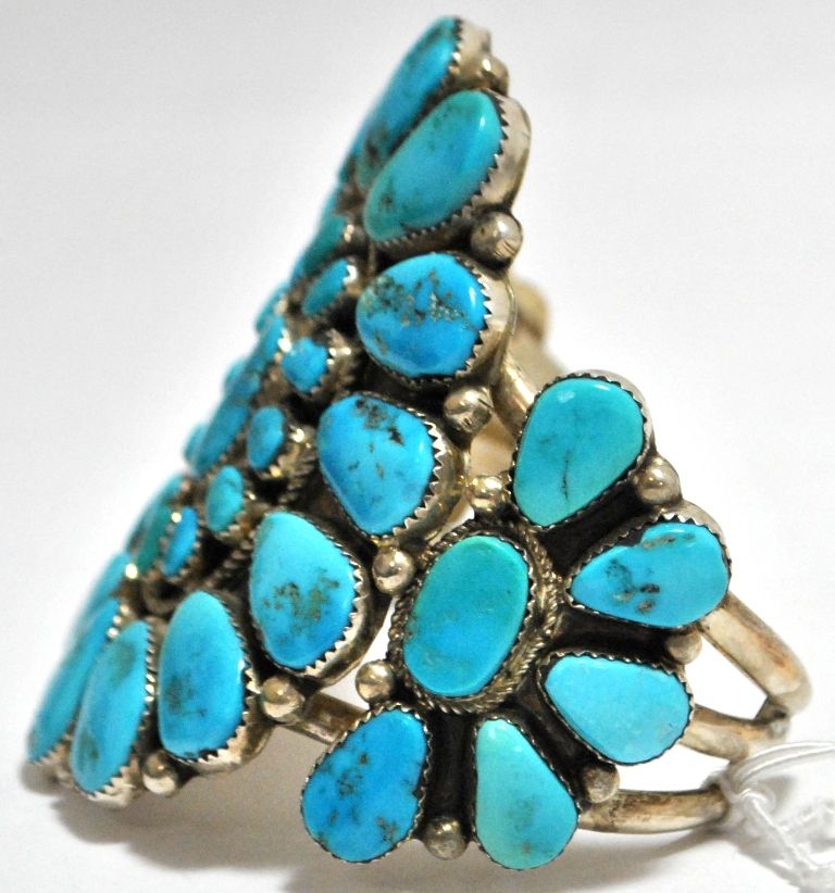 Old Pawn Turquoise Needlepoint Sterling Silver Cuff Bracelet