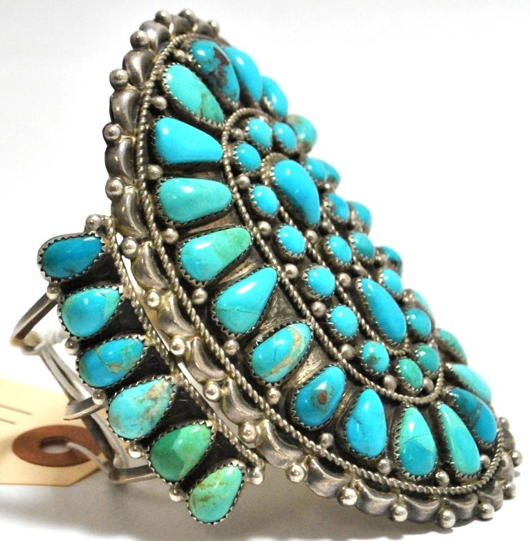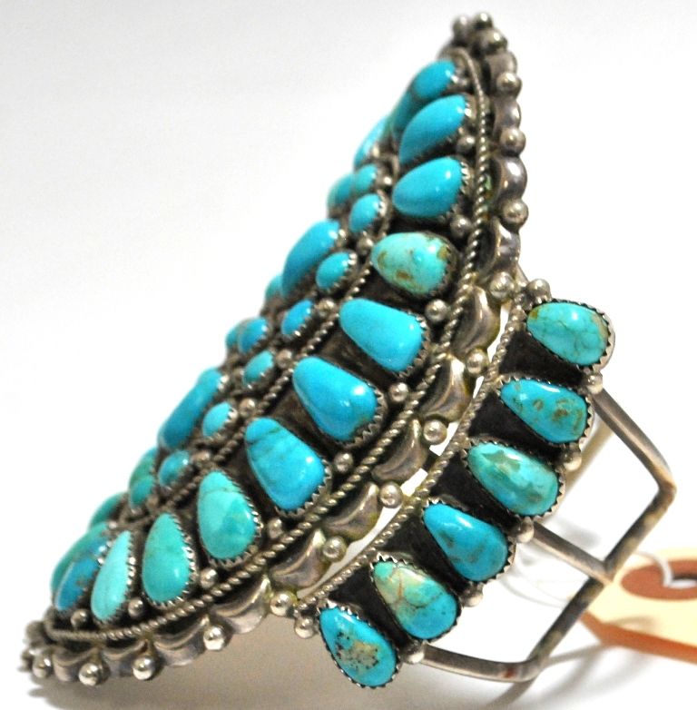 Old Pawn Turquoise Needlepoint Sterling Silver Cuff Bracelet