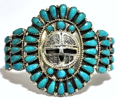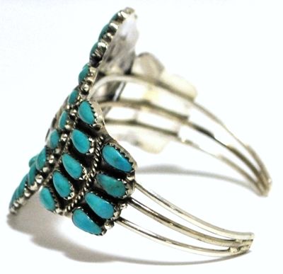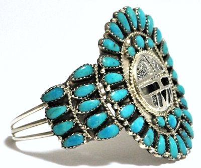 Old Pawn Turquoise Needlepoint Sun Face Sterling Silver Cuff Bracelet - LMB