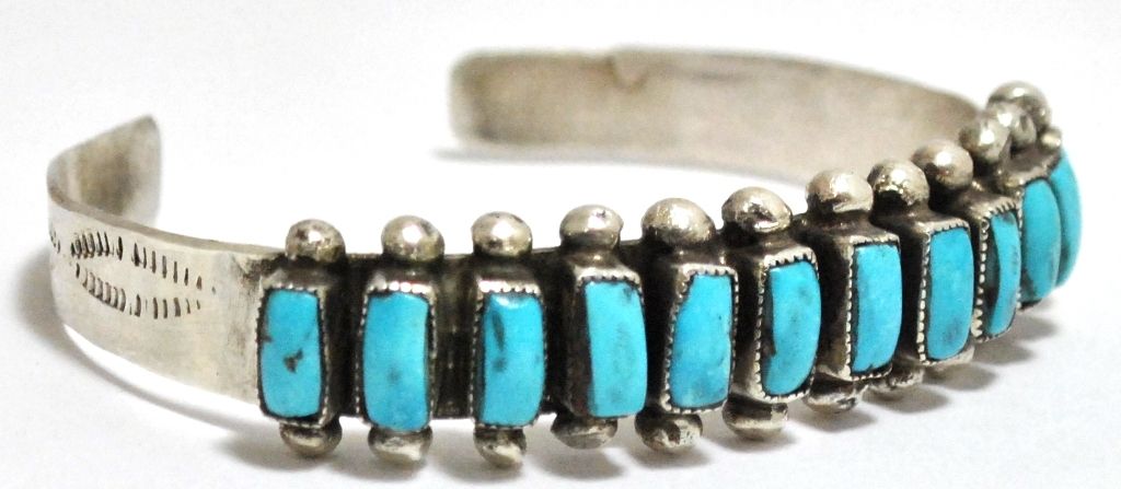 Old Pawn Turquoise Petit Point Sterling Silver Cuff Bracelet