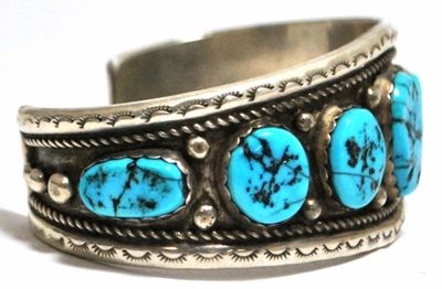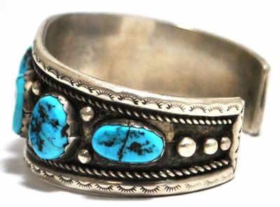 Old Pawn Turquoise Sterling Silver Cuff Bracelet - HS