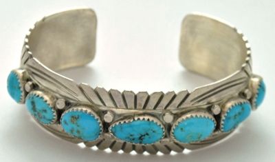 Old Pawn Turquoise Sterling Silver Cuff Bracelet - S.