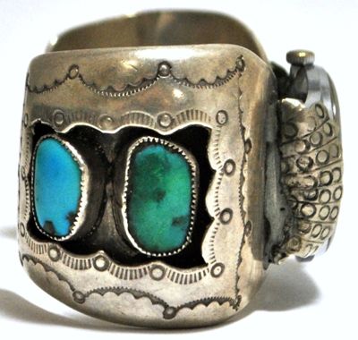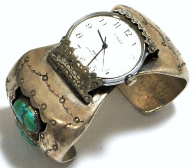 Old Pawn Turquoise Sterling Silver Cuff Bracelet Women's Watch with Timex Face
