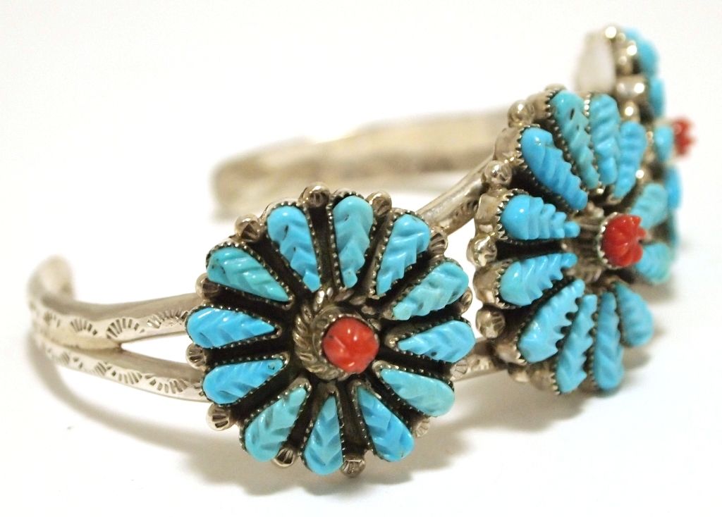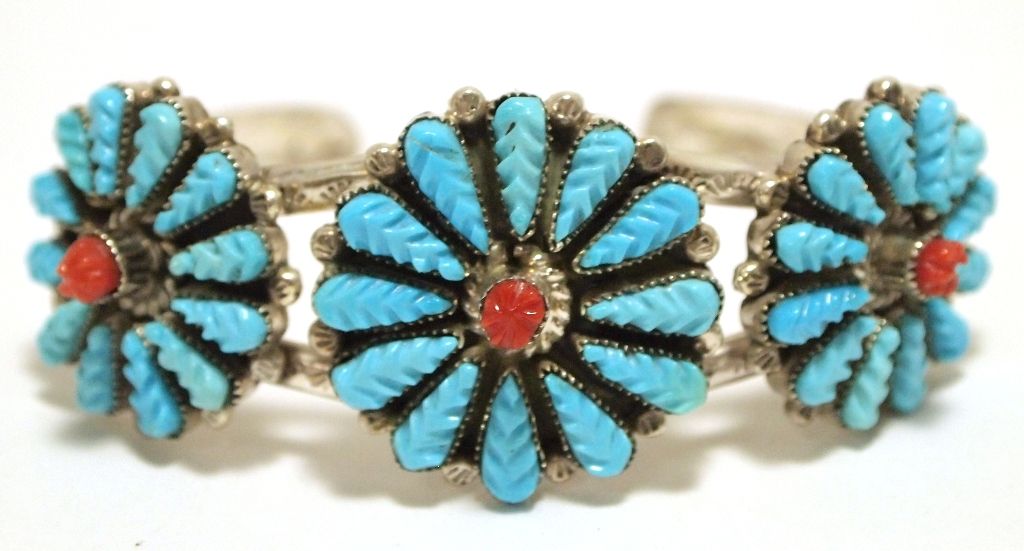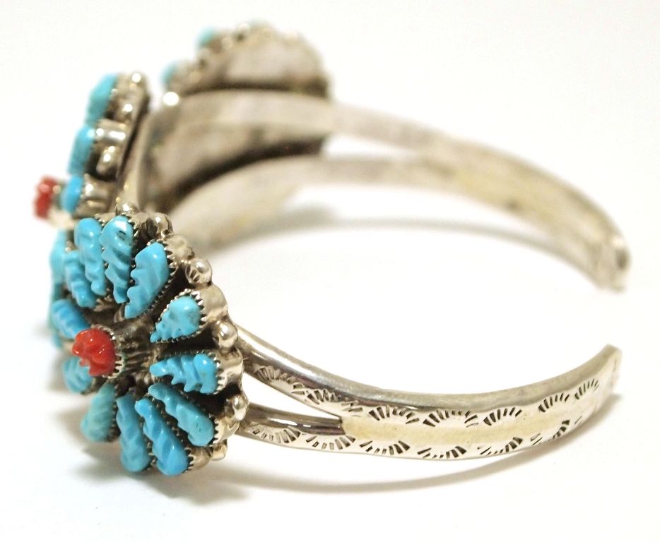 Old Pawn Zuni Coral & Turquoise Sterling Silver Cuff Bracelet - Robert Eustace