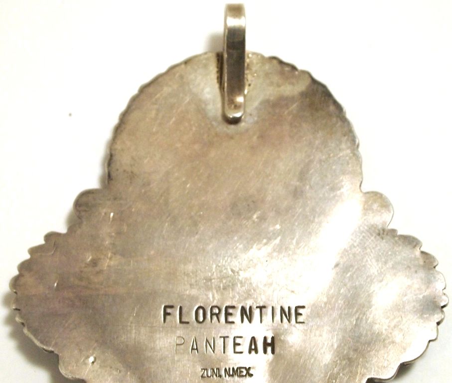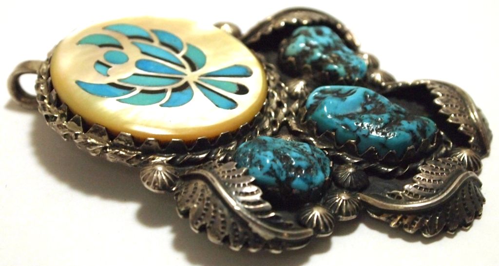 Old Pawn Zuni Mother of Pearl & Turquoise Sterling Silver Pendant - Florentine Panteah