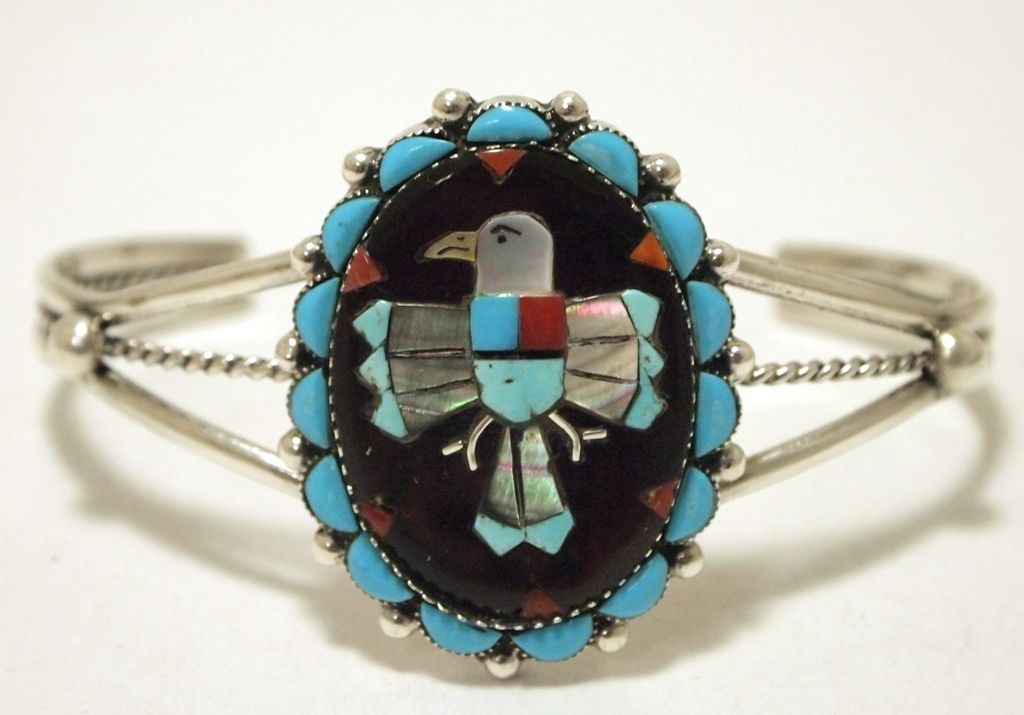 Old Pawn Zuni Multi-Stone Inlay Eagle Sterling Silver Cuff Bracelet - Bobby Concho