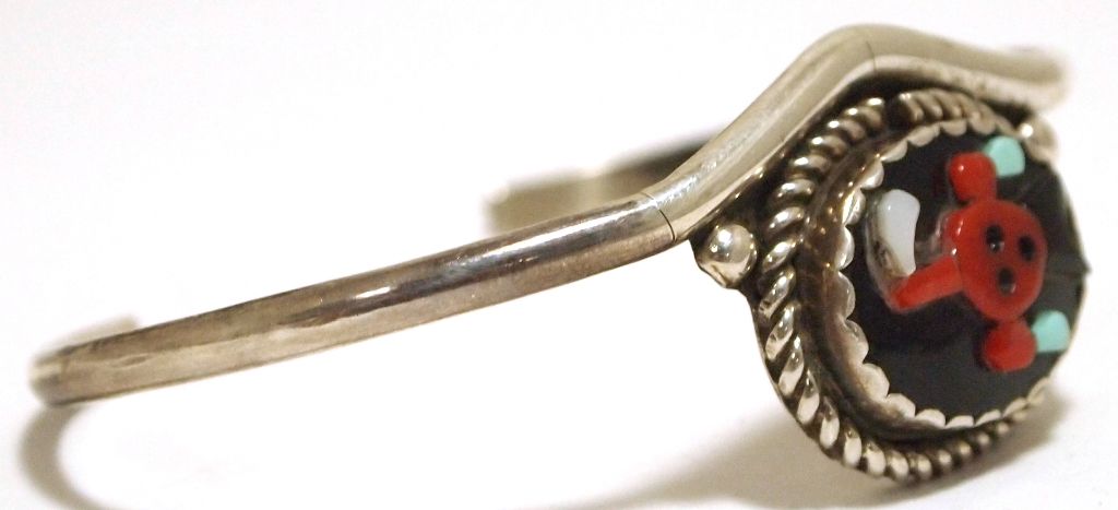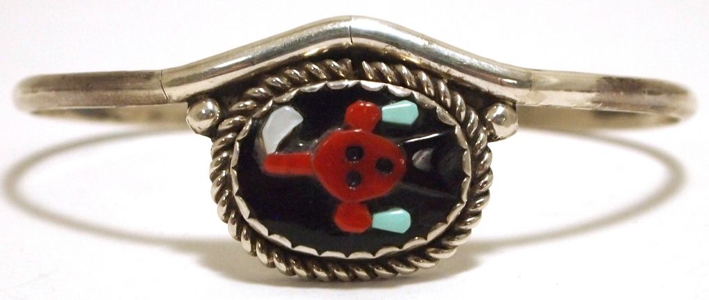 Old Pawn Zuni Multi-Stone Inlay Mudhead Face Sterling Silver Cuff Bracelet - Beverly Etsate