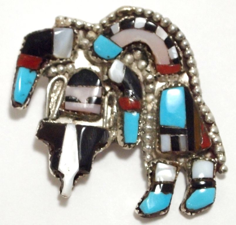 Old Pawn Zuni Multi-Stone Inlay Rainbow Kachina Sterling Silver Pendant & Pin - QC