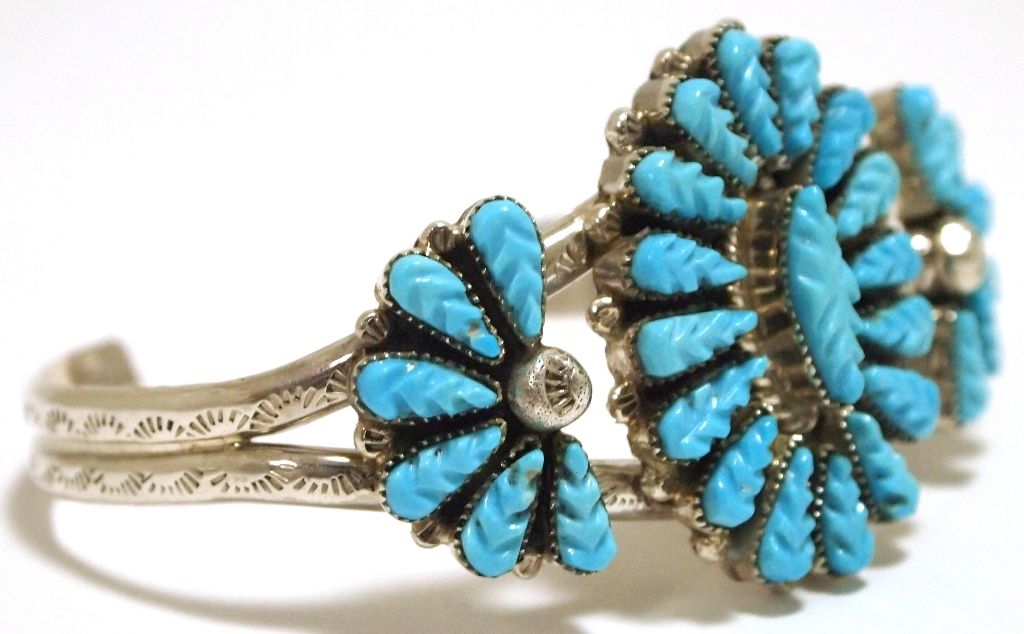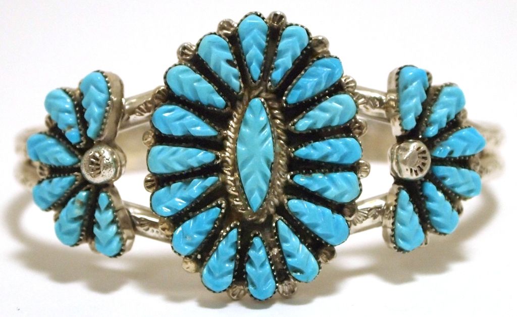 Old Pawn Zuni Sleeping Beauty Turquoise Sterling Silver Cuff Bracelet - Robert Eustace