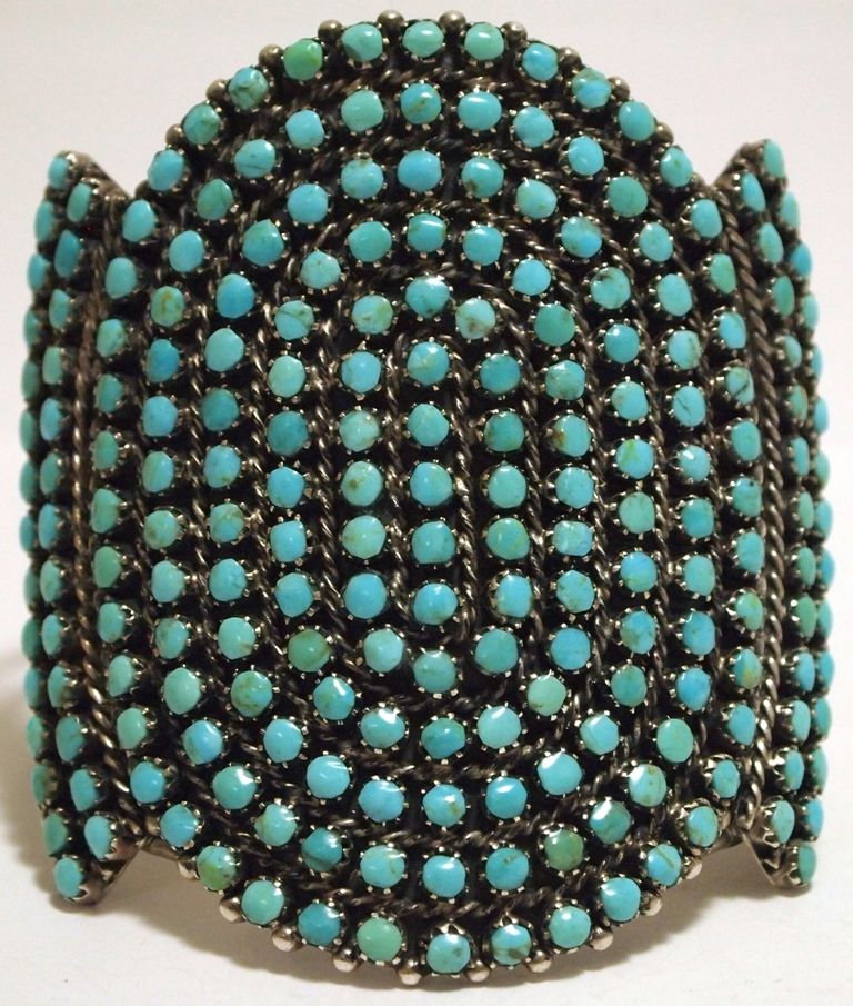 Old Pawn Zuni Turquoise Dots Cluster Sterling Silver Cuff Bracelet
