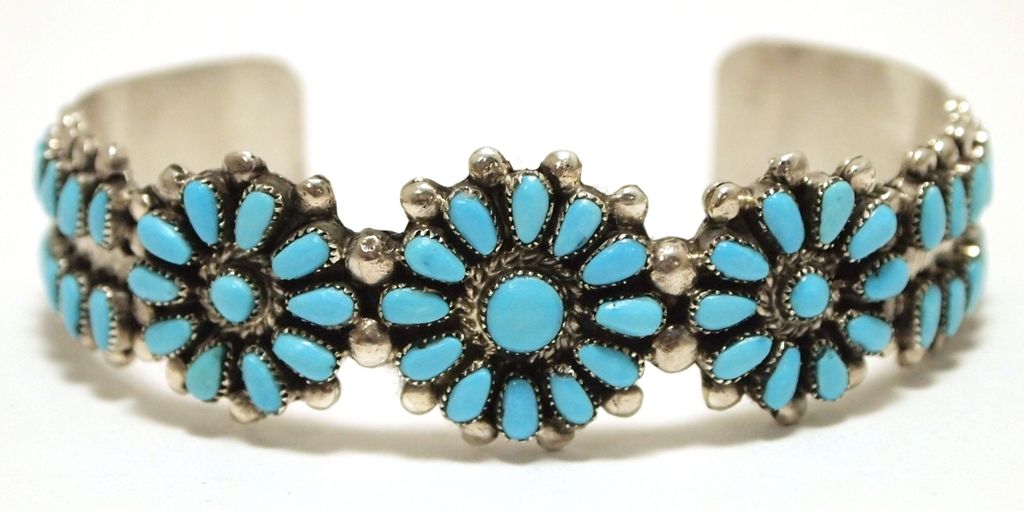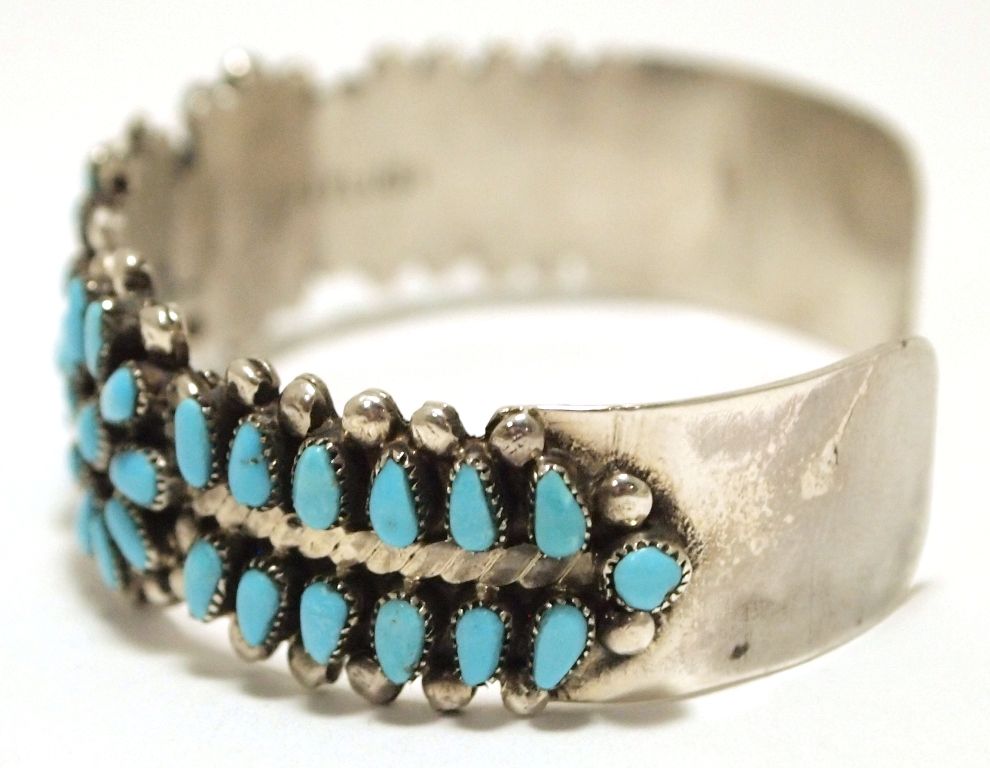Old Pawn Zuni Turquoise Needlepoint Sterling Silver Cuff Bracelet - Irene Paylusi