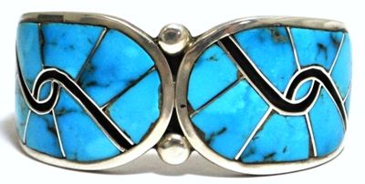 Old Pawn Zuni Turquoise Sterling Silver Cuff Bracelet - HS