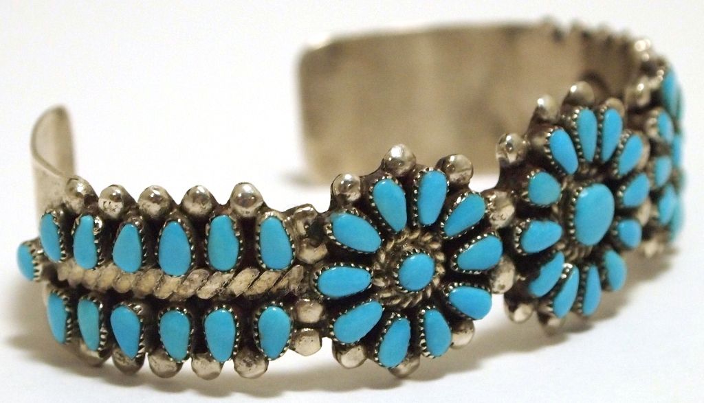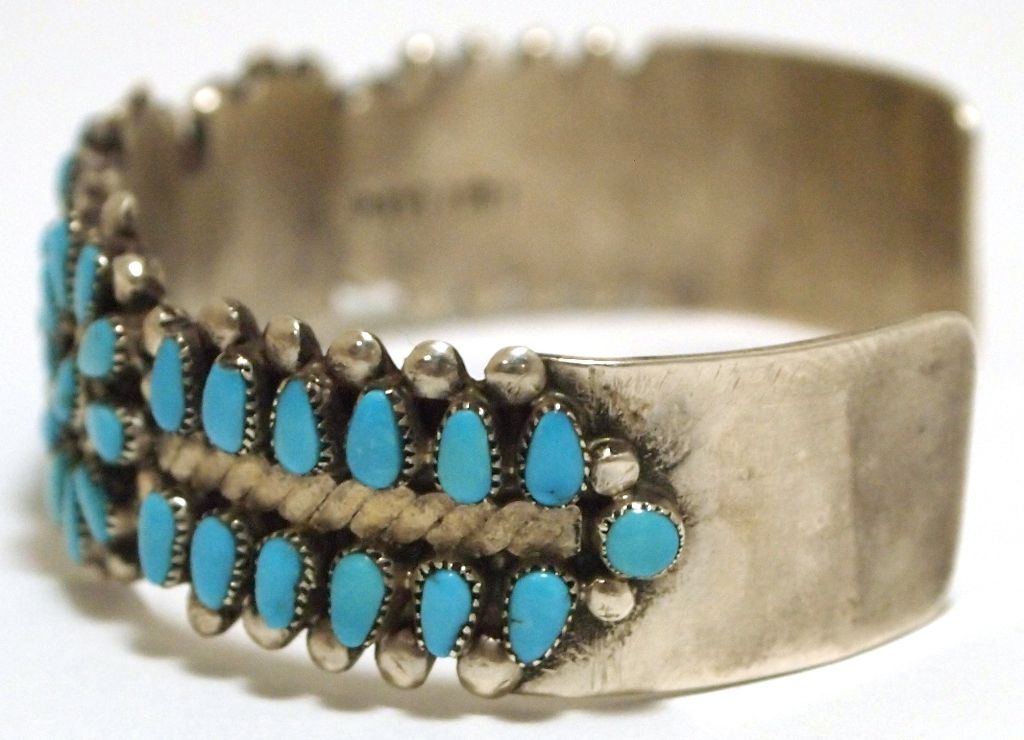 Old Pawn Zuni Turquoise Sterling Silver Cuff Bracelet - Irene Paylusi