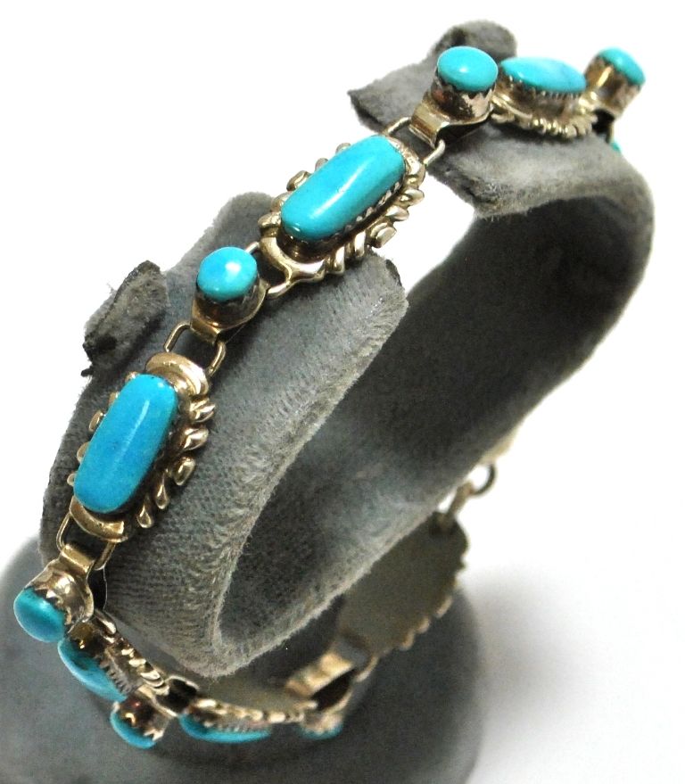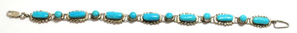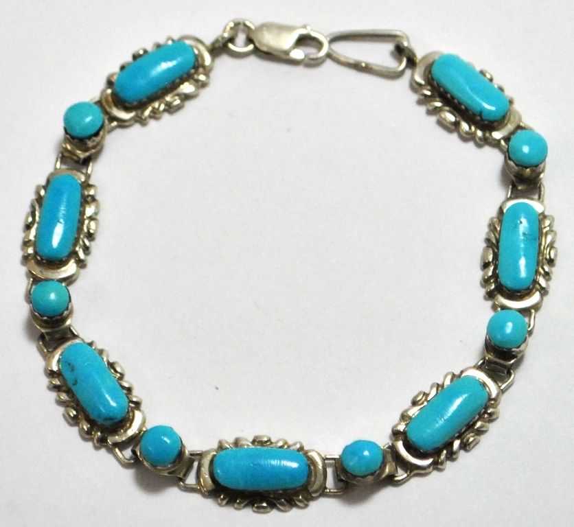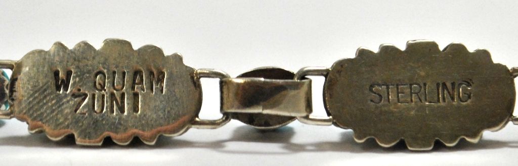 Old Pawn Zuni Turquoise Sterling Silver Link Bracelet - W Quam