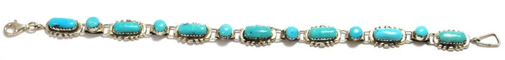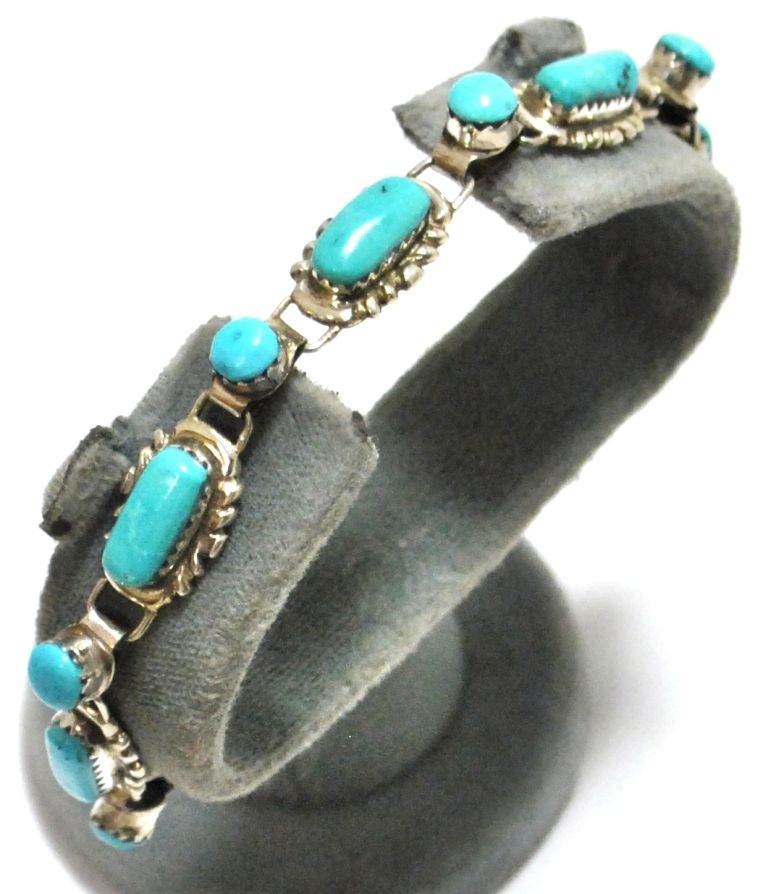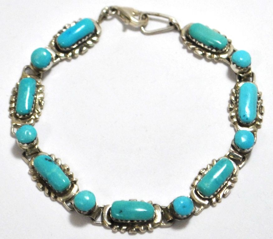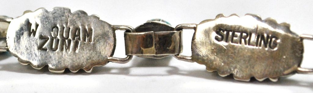 Old Pawn Zuni Turquoise Sterling Silver Link Bracelet - W. Quam