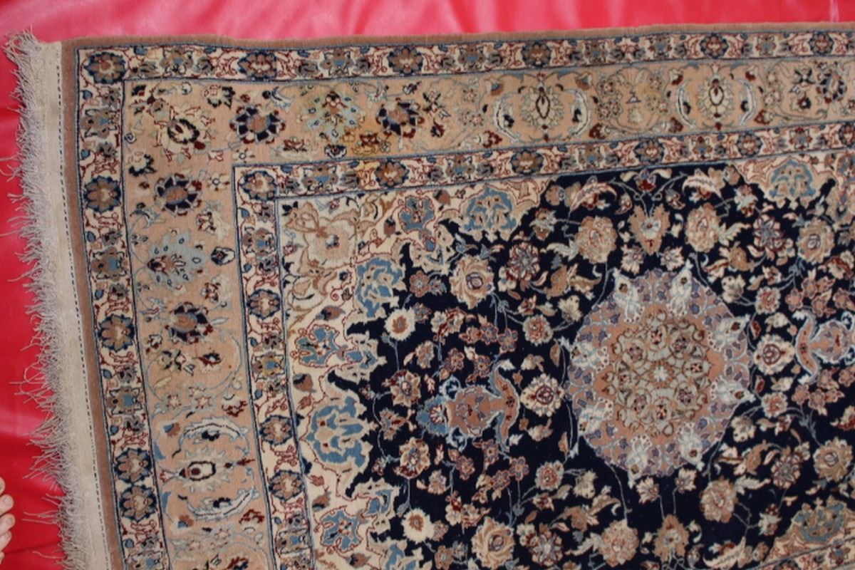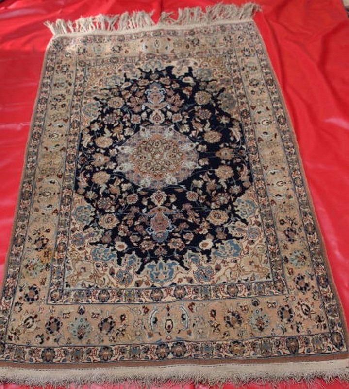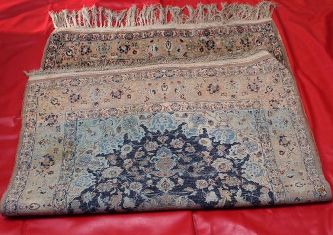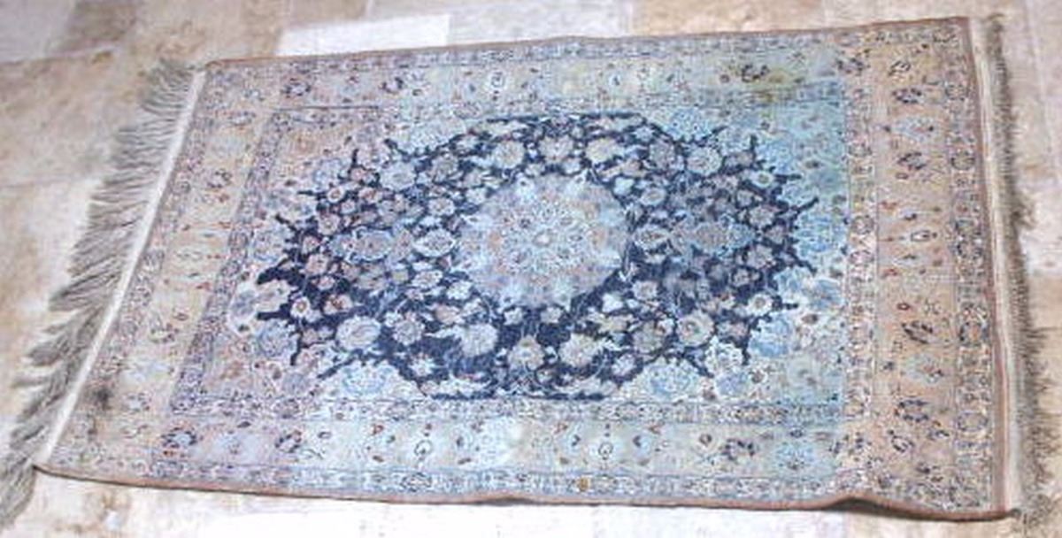 Antique Floral Tabriz Qum Persian Rug over 100 years old Fine Silk thread on a Silk Foundation. Persian Rug (Main Colors: Blue & White) 70x43", 9-lbs, 4.85mm thick