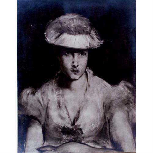 Old black and white photograph of Impressionist painting portraying Marguerite Gauthier-Lathuille by Edouard Manet. Undated but part of a 1920's European collection. In good used condition with minor signs of wear as shown. Please ask questions, request additional photos and shipping costs before buying.