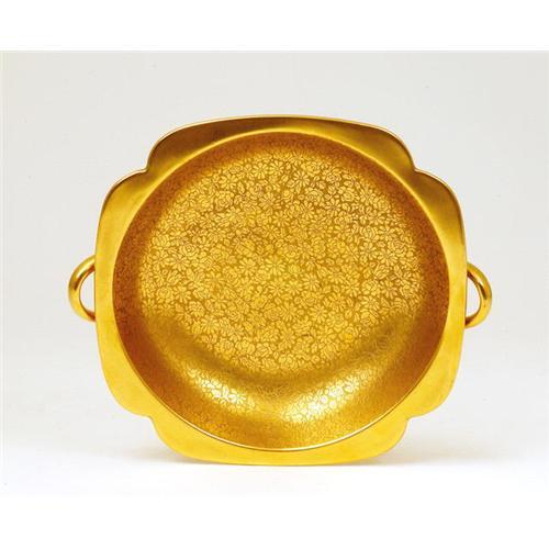 Old Pickard Studio Gold Rose & Daisy Handle Tray Mark "Pickard"