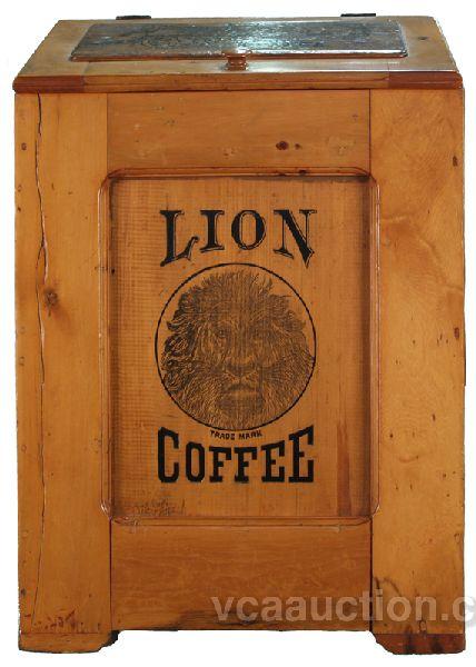 Old Pine Wood "Lion Coffee" Embossed Coffee Bin - 21" x 21" x 32" tall