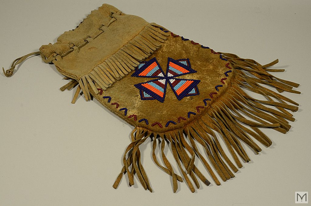 Old Plains Smoked Deer Skin Hide Bag with Beaded Snowflake and 4 Directions