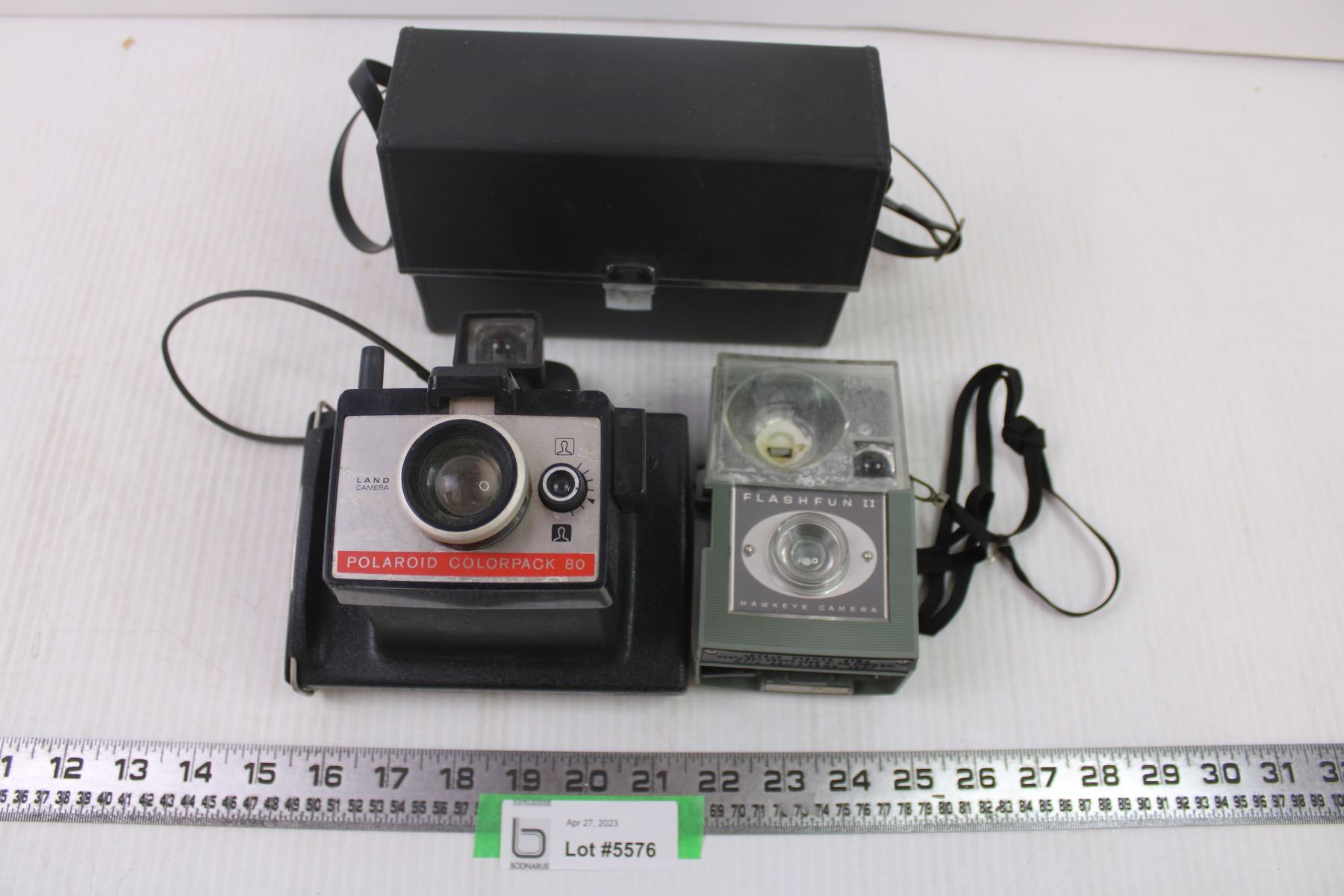 Old Polaroid Camera, Kodak Hawkeye Camera, and Old Leather Camera case
