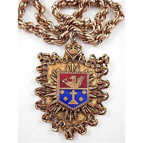<tr><td>Title:Old RELIGIOUS Gold ENAMEL Coat of ARMS Necklace</td></tr>