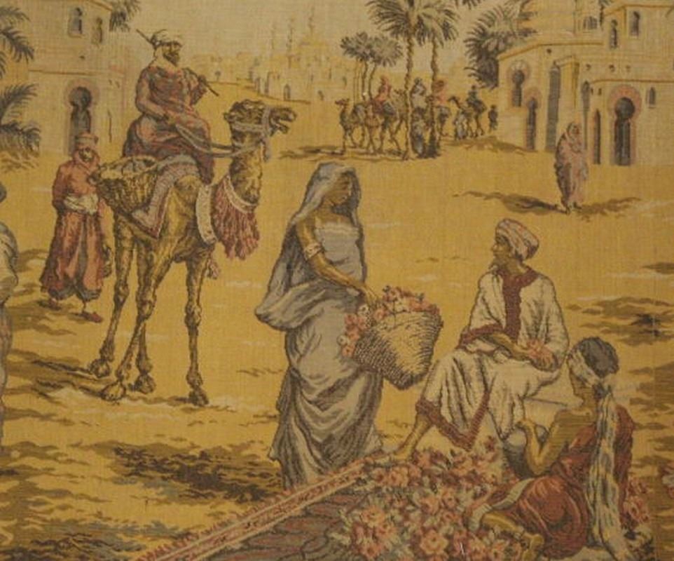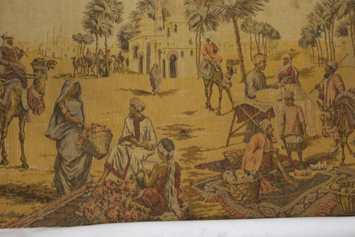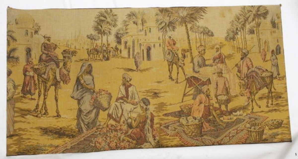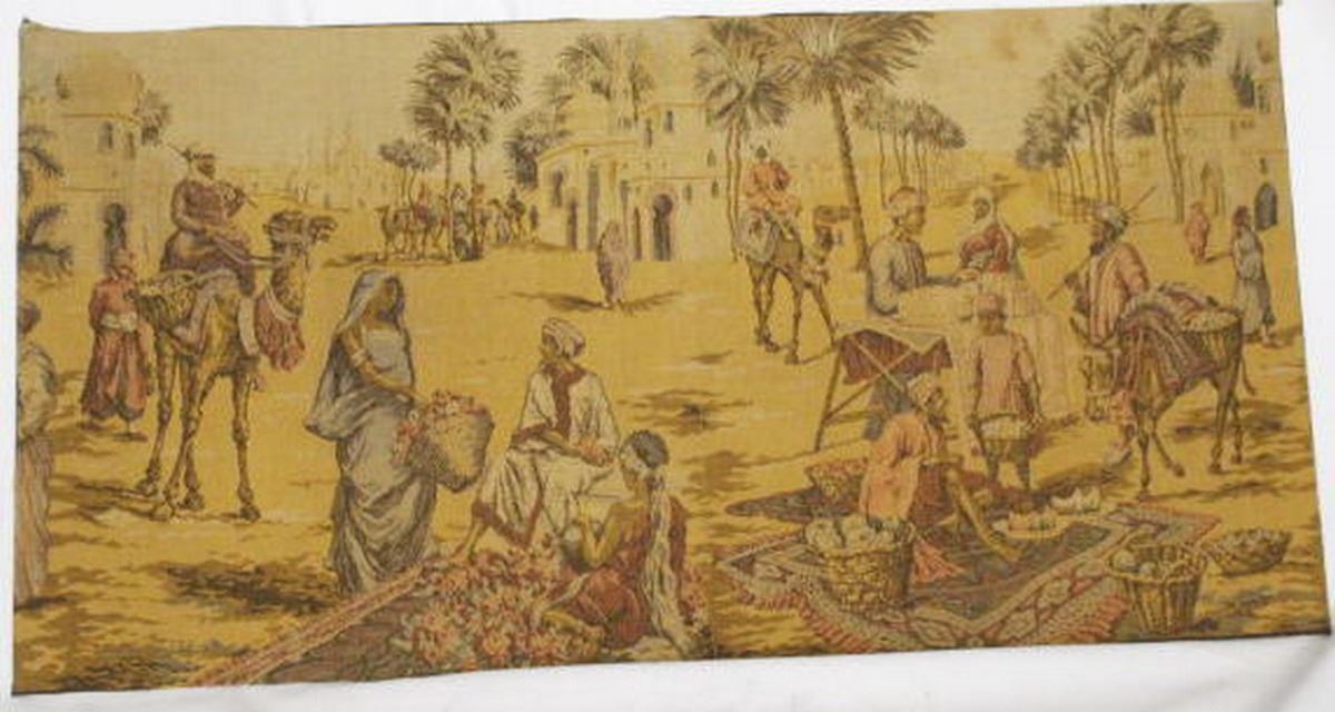 Old Rare c1840 Needlepoint Tapestry Depiction of Middle East Tribal Life 38"