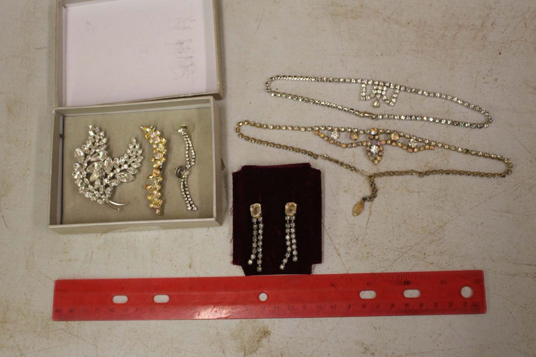 Old Rhinestone Necklaces, Earrings & Brooches