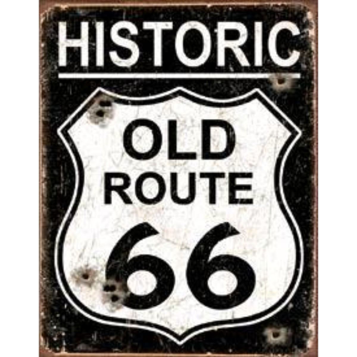 Old Route 66 - Weathered 12.5"Wx16"H - Vintage style decorative tin sign