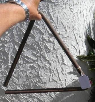 Triangular Dinner Caller Bell Measures 16x16 inches. Very used. Shipping $15.00