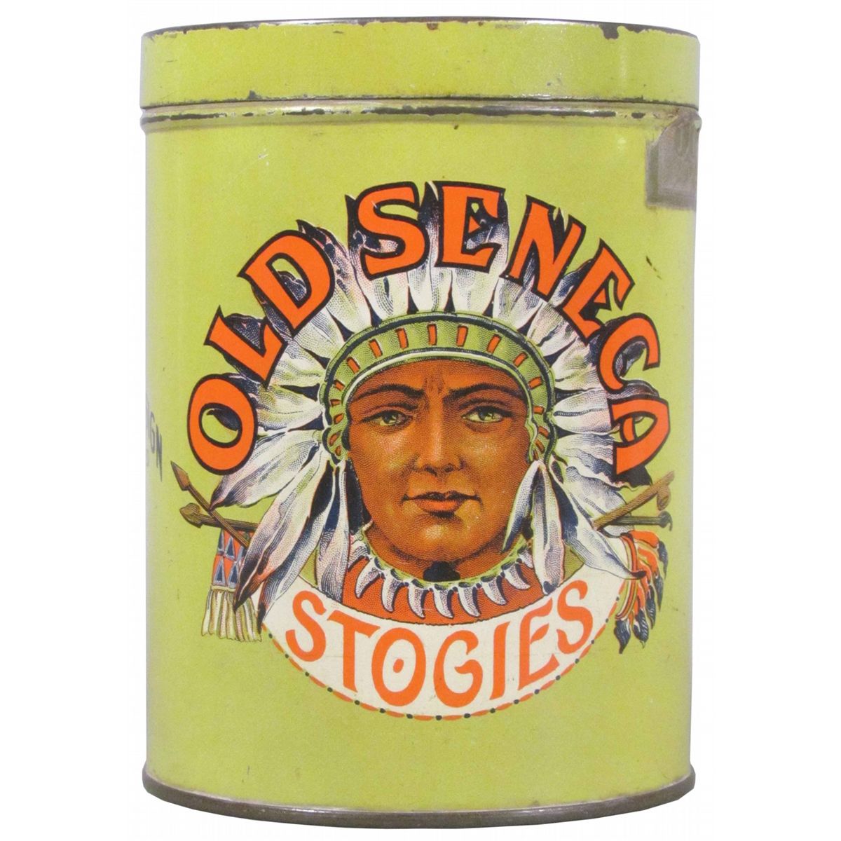 Old Seneca Cigar Tin for 25 Cigars. No price version. W.H. Kildow Mfg. The Republic Metal ware Co. Buffalo, NY. Some slight wear to the edge of the lid otherwise Excellent Condition. 4 1/4 inch diameter X 5 3/4 inches tall.