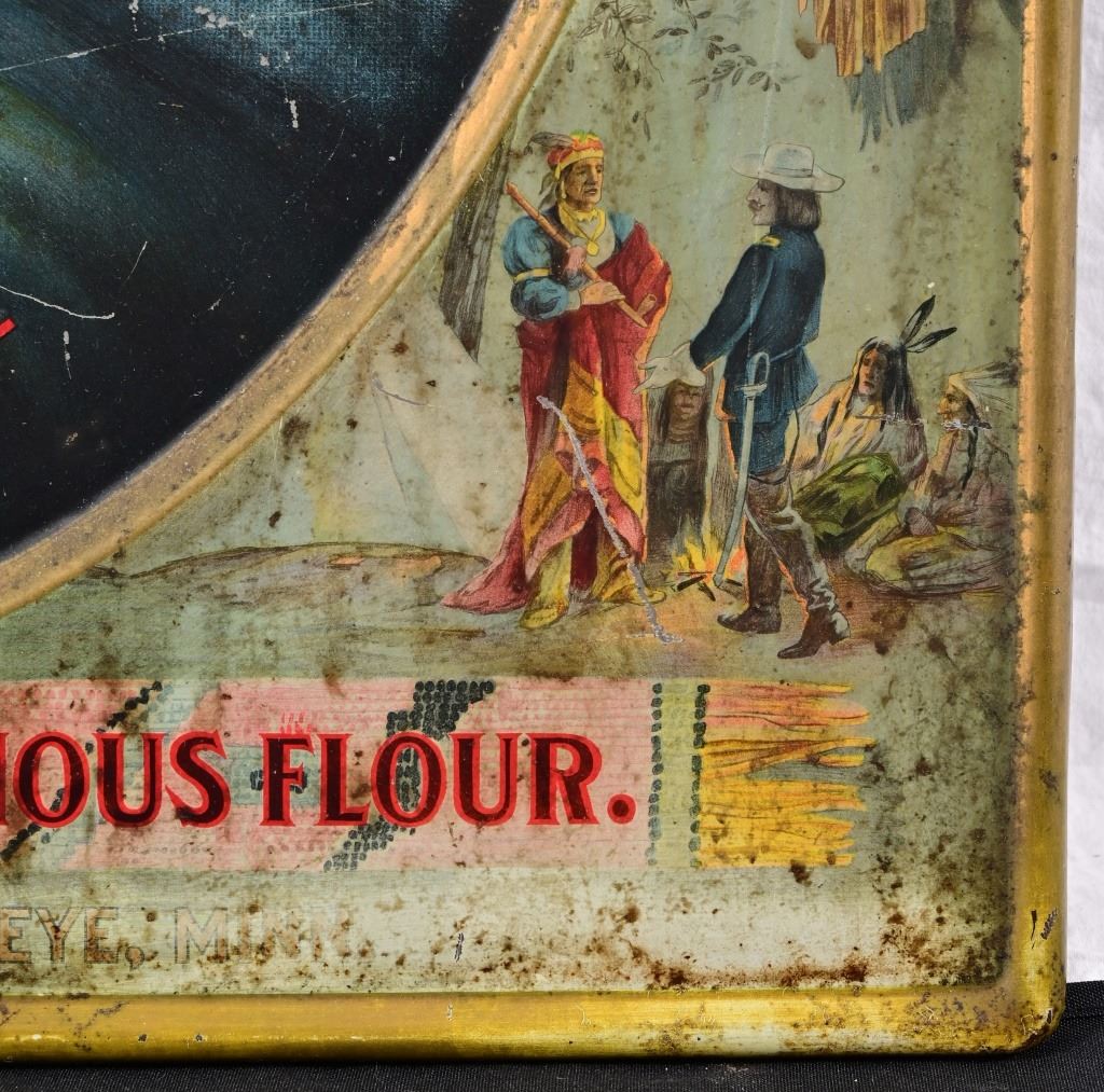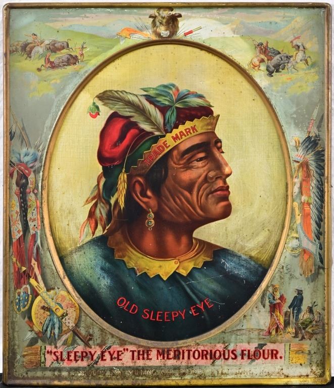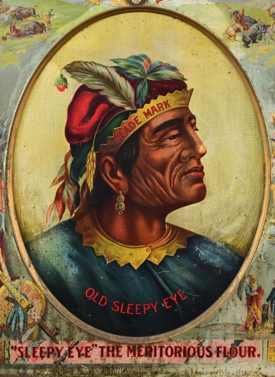 "Sleepy Eye" The Meritorious Flour. Sleepy Eye Milling Co., Sleepy Eye, Minn. Measures 20.5" x 24.5" . Pre-1909, as the company had changed location to Minneapolis.