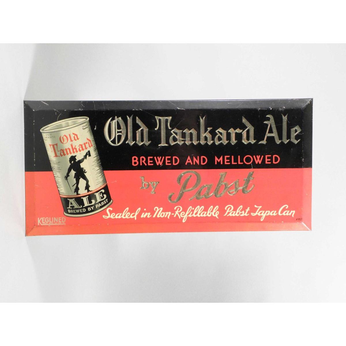 Old Tankard Ale Tin Over Cardboard String Hanger/Easel Back Sign. Brewed by Pabst. A few minor scratches otherwise very good condition. 15 X 7 inches.