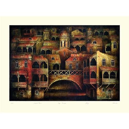 "Old Tbilisi" unique lithograph by Chkhaidze Omar of great size! </strong></em></font></td>