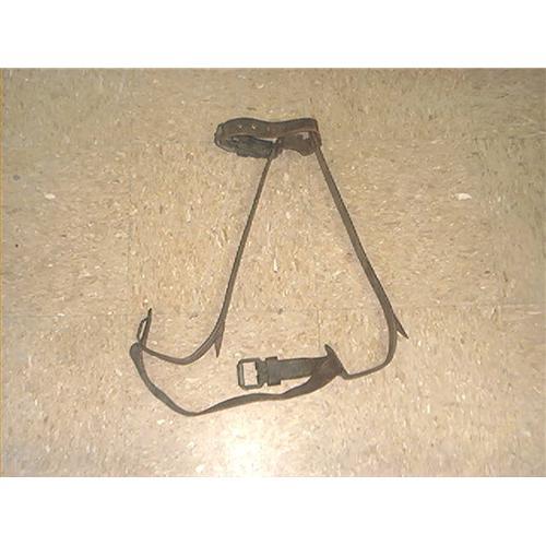 Old Telephone or Tree Climbing Spikes. They fit over your shoes and have cast iron spikes on each side so you can climb poles. I remember these when I was a kid. Well that's another story. They are in very good condition, starting to get some rust coloring, and the leather straps are either worn or starting to wear. Great collector item and very decorative. This is how they worked on our telephone poles long ago. They still use some like it, but not this style anymore. Hope you like them.