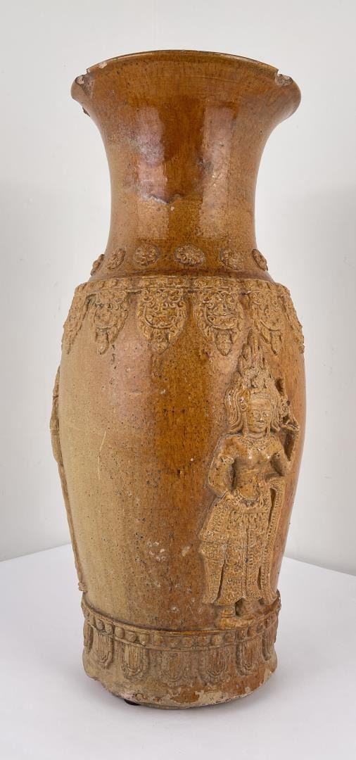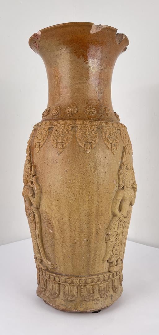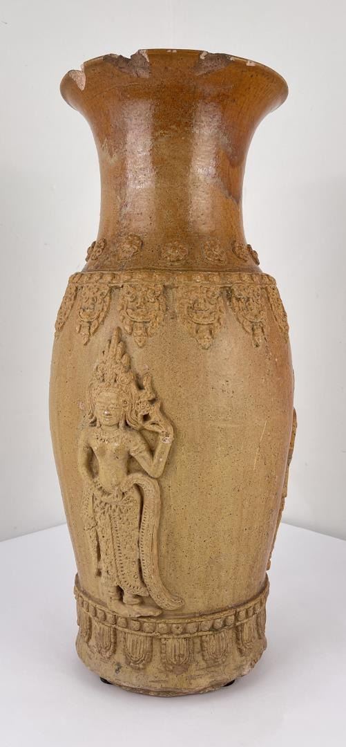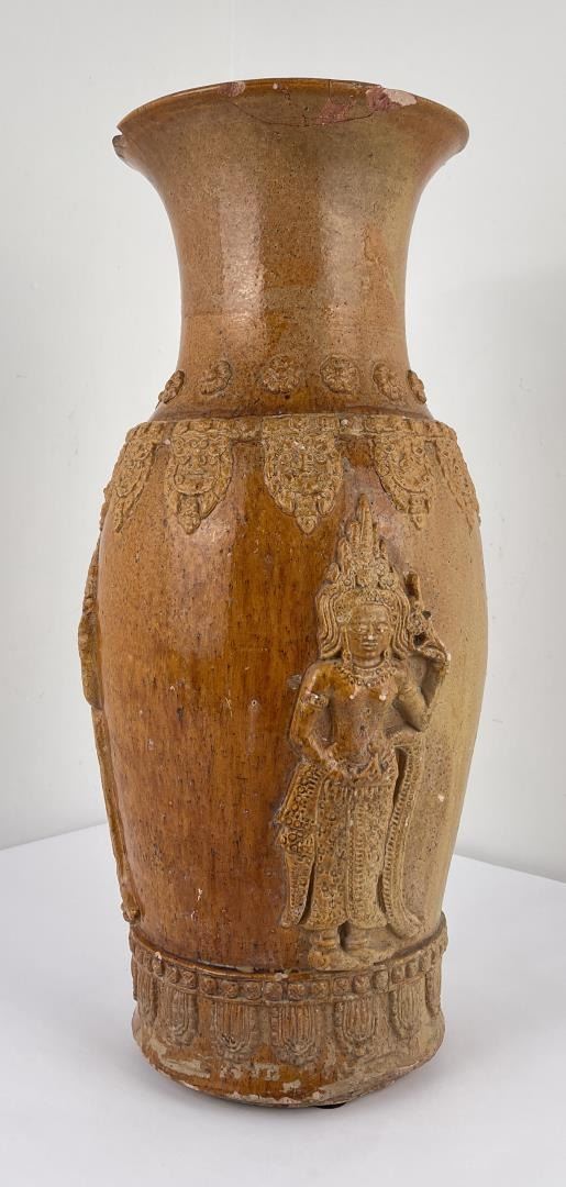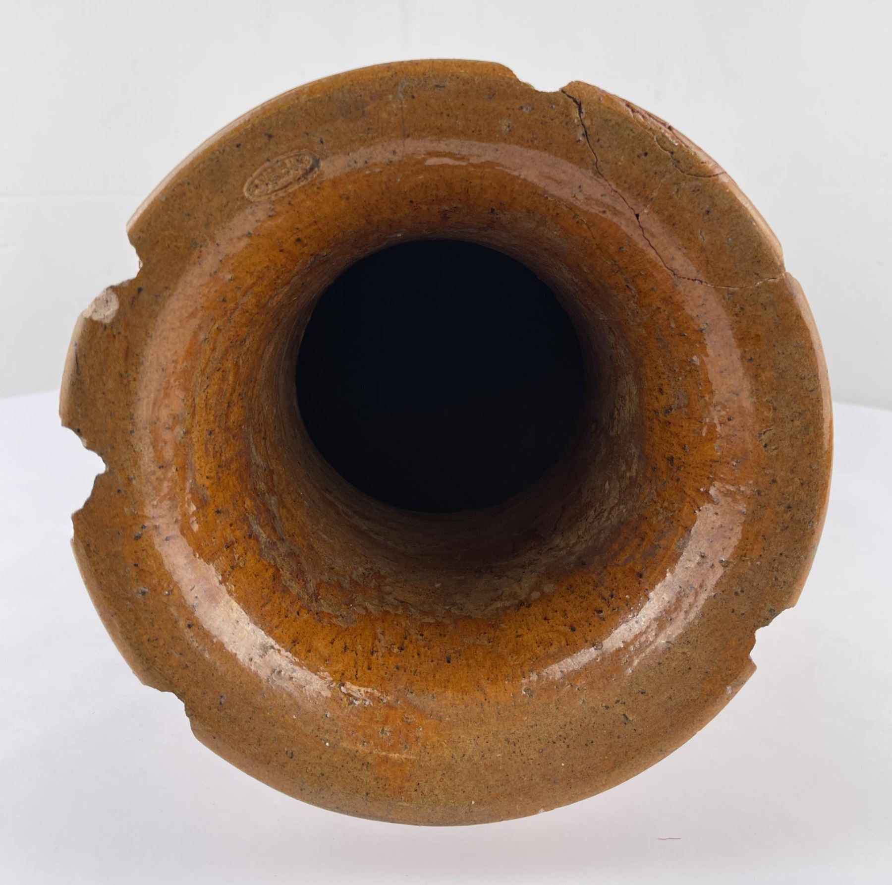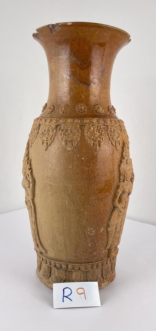 24" tall, 10 1/2" diameter. Appears to have age. Some damage as shown.