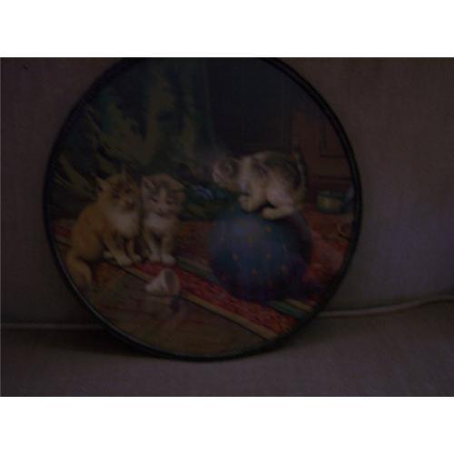 This is another darling flue cover.It is called Three Little Kittens,made in Germany and was given as a gift in 1910.Cardboard back has writing on it and it is a little bumpy but does not affect the picture.Measures a large 9 1/2" across.Absolutely darling flue cover.These are all old ones not the repros that are out today.