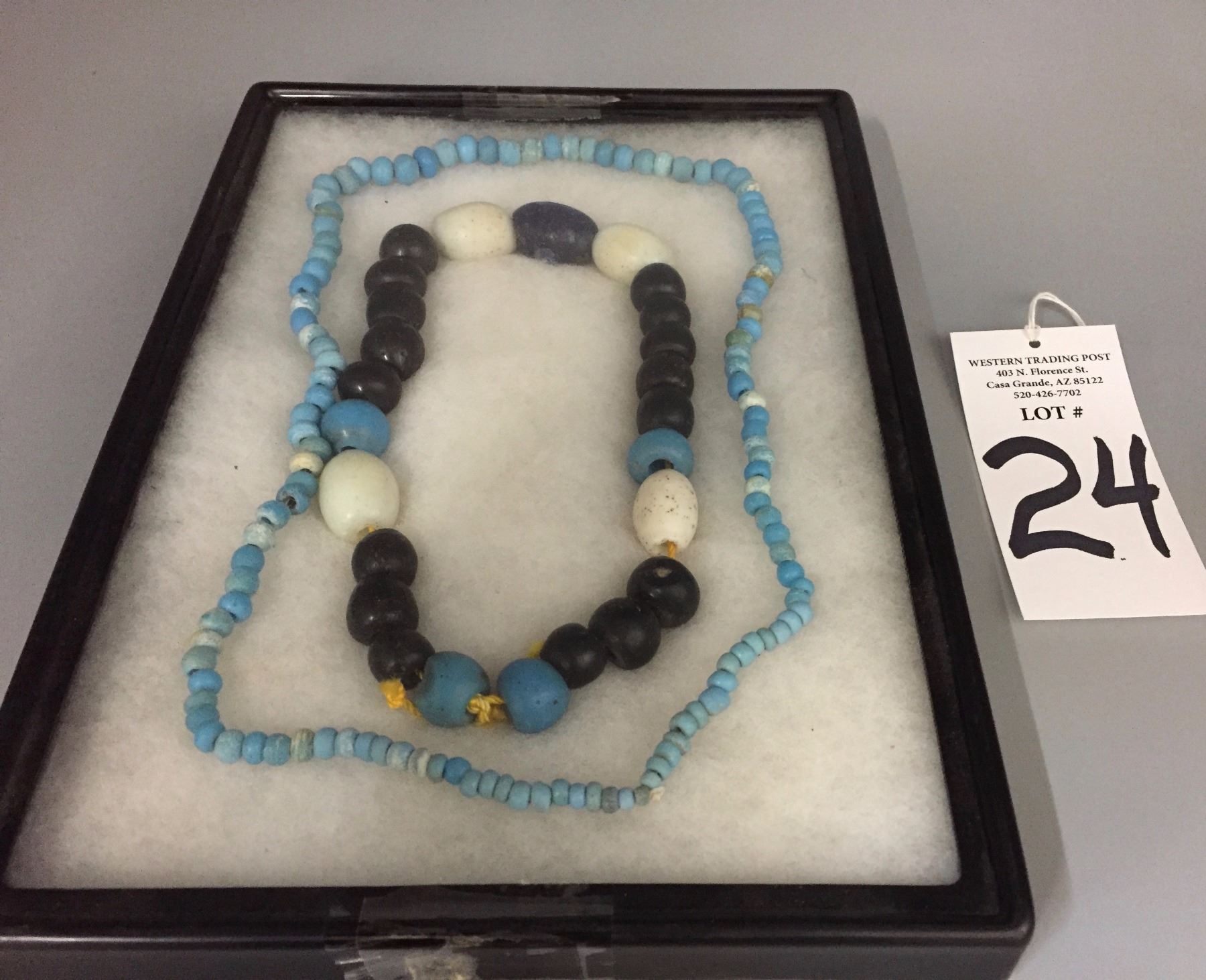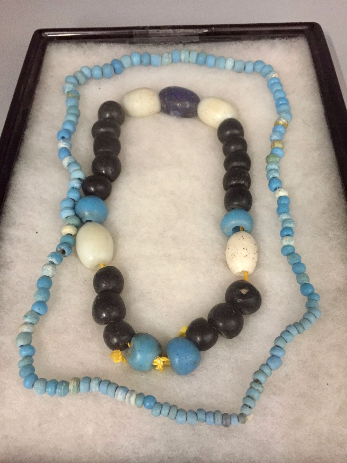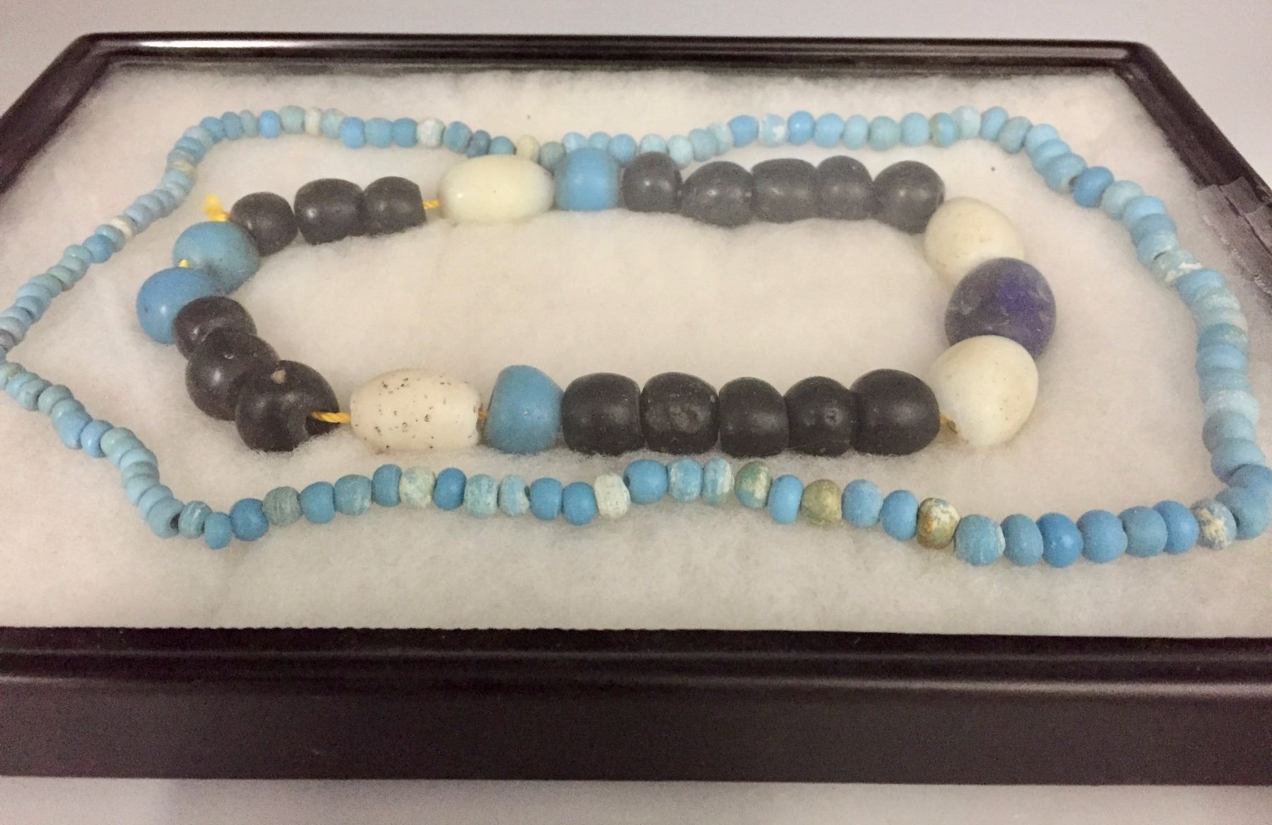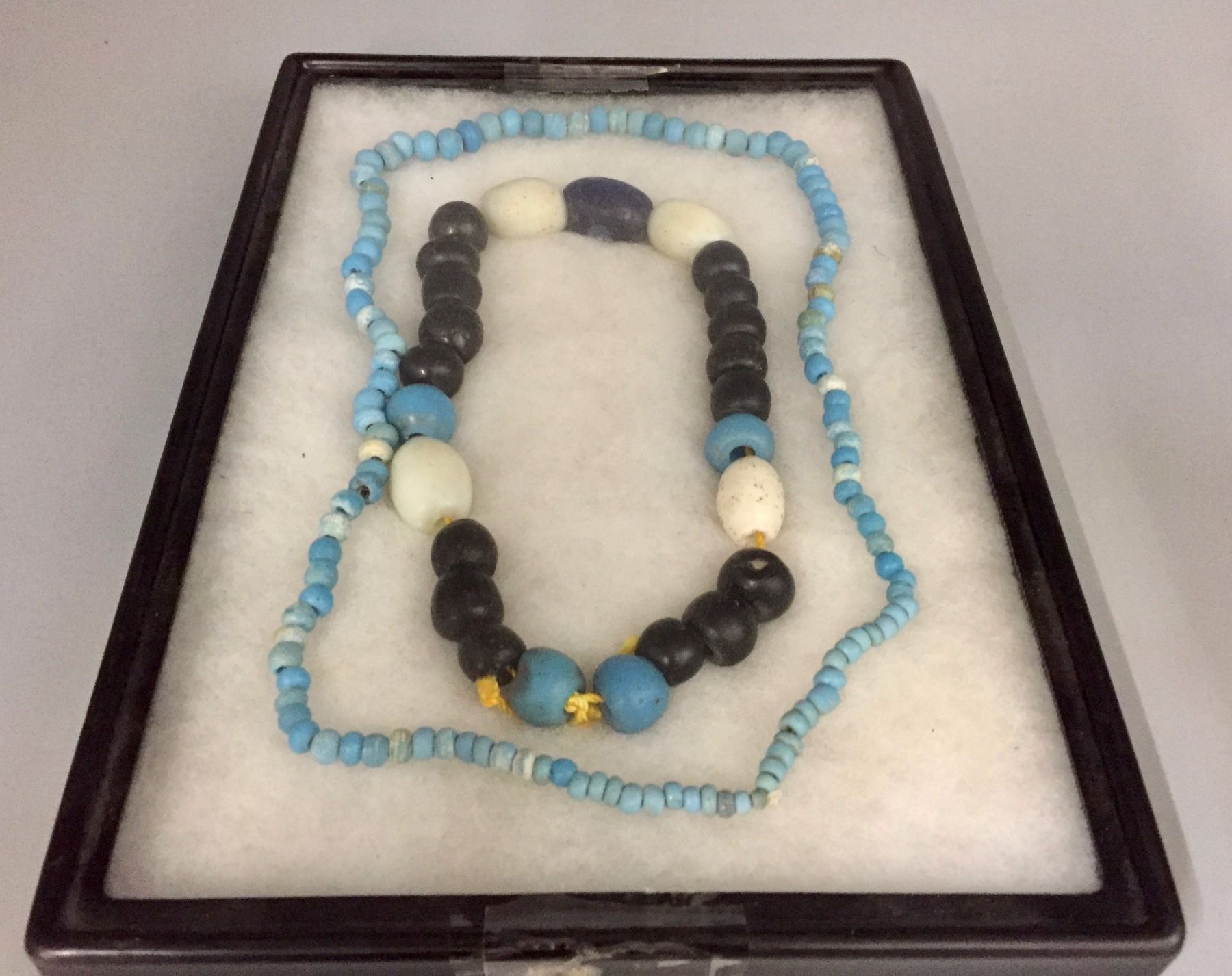 Description: Trade beads in a case. Maker: Unknown. Approx. Age: Antique. Size: Case measures 8 3/8” w x 11 3/4” l. Condition: Pretty good for its age, wear expected. Please look closely at the pictures - they are an important part of our description. Shipping: There will be a $5 handling / packaging fee for shipping this lot. The actual cost of postage will be added on top of that.