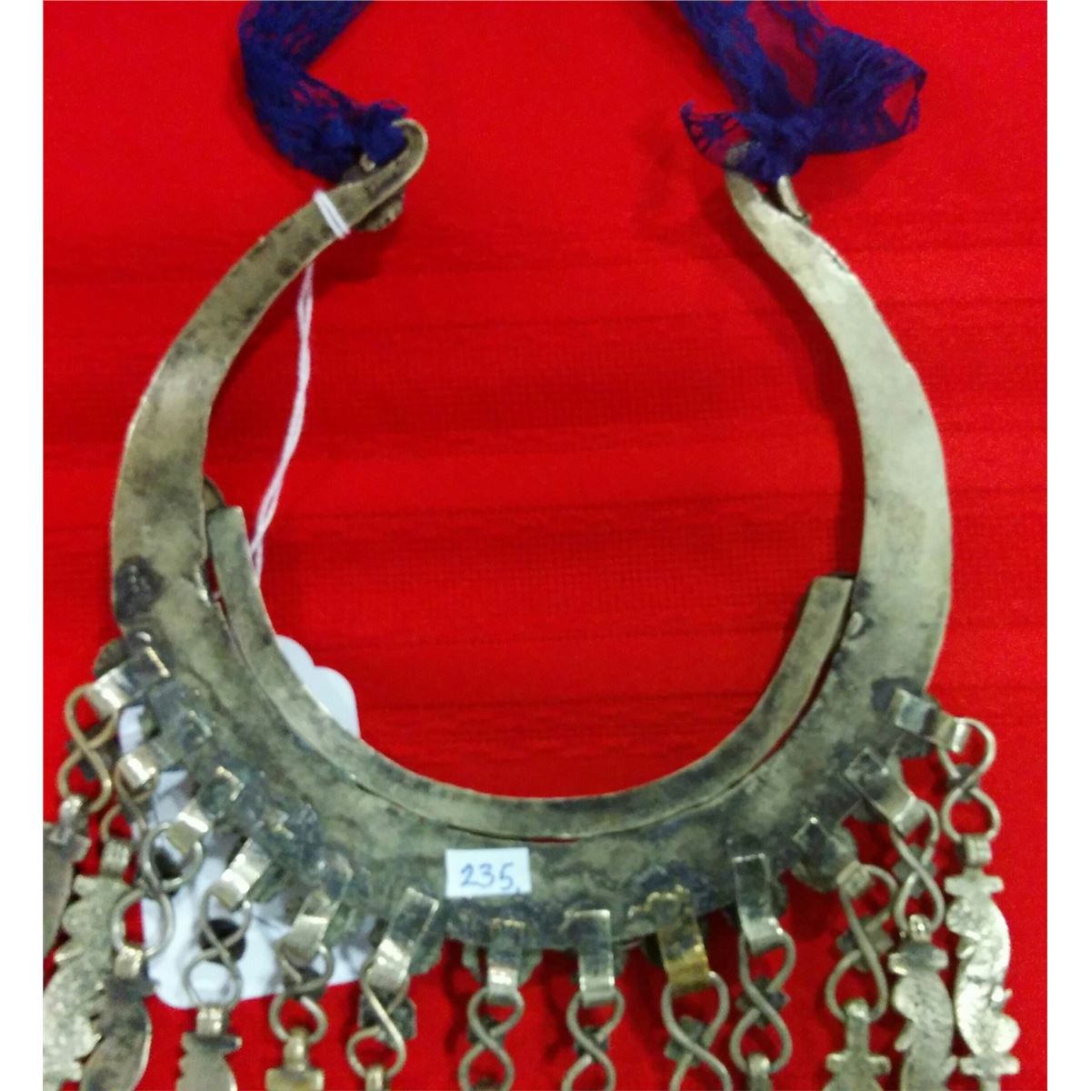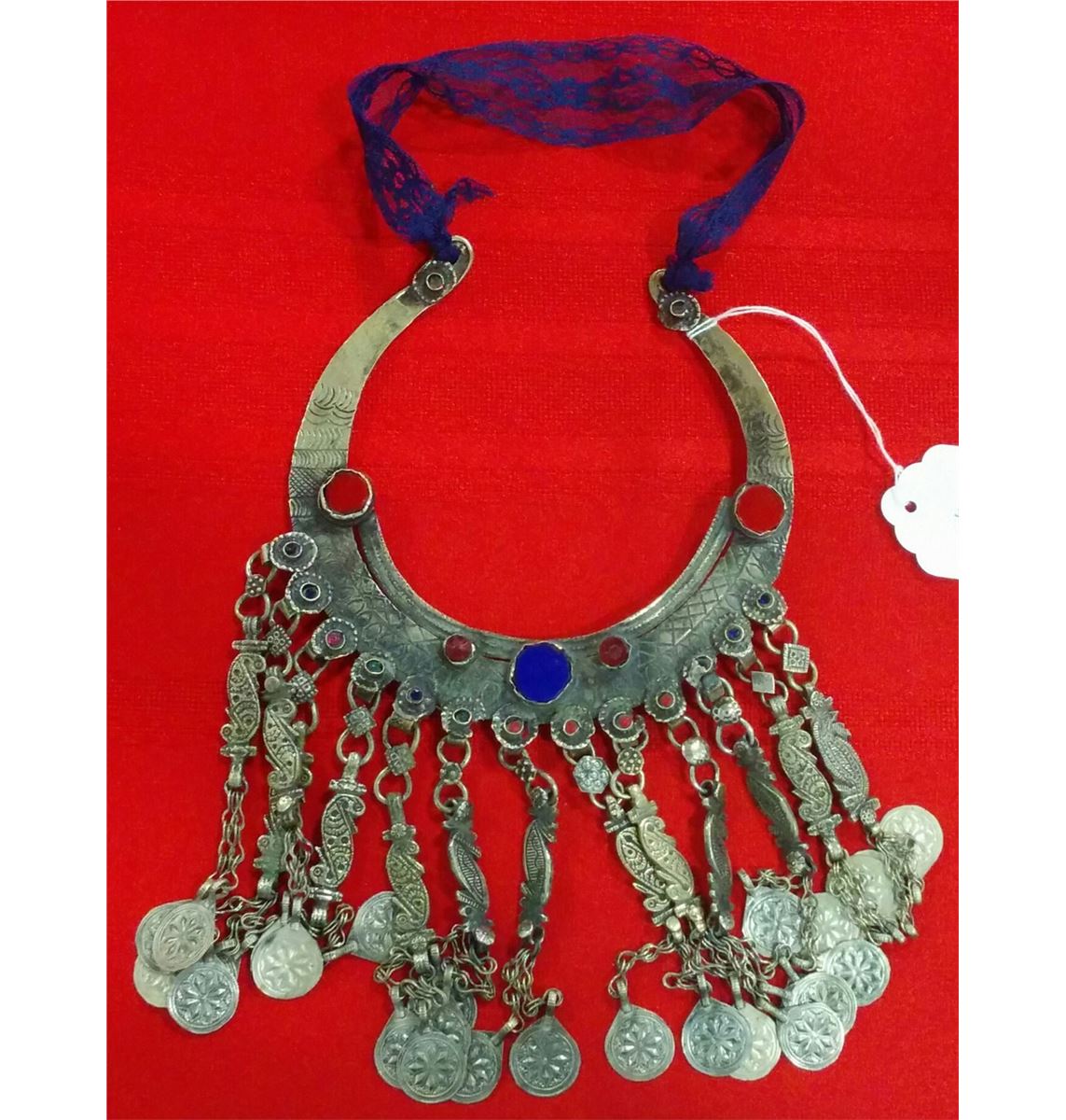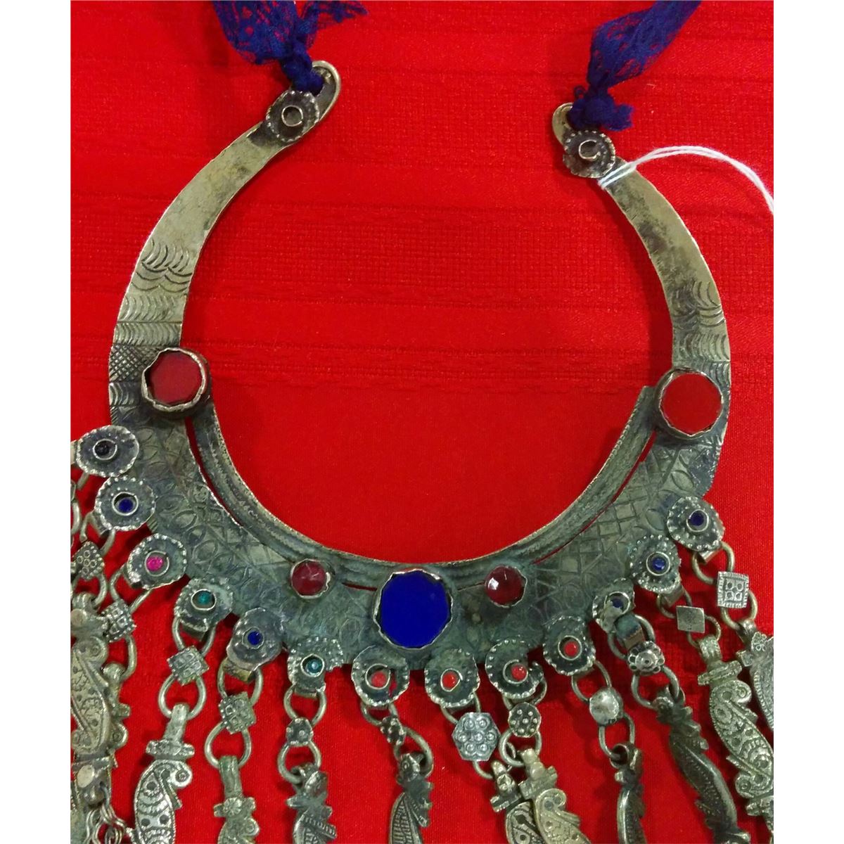 Old Tribal Necklace color type with silver carnelian and blue glass. The item is 11 x 8 x 1/2 inches. This item was brought to the U.S. by a returning U.S. Soldier. Shipping $20.00