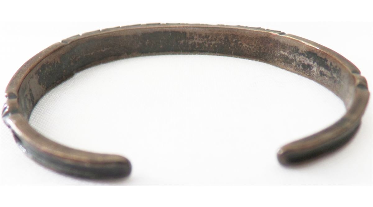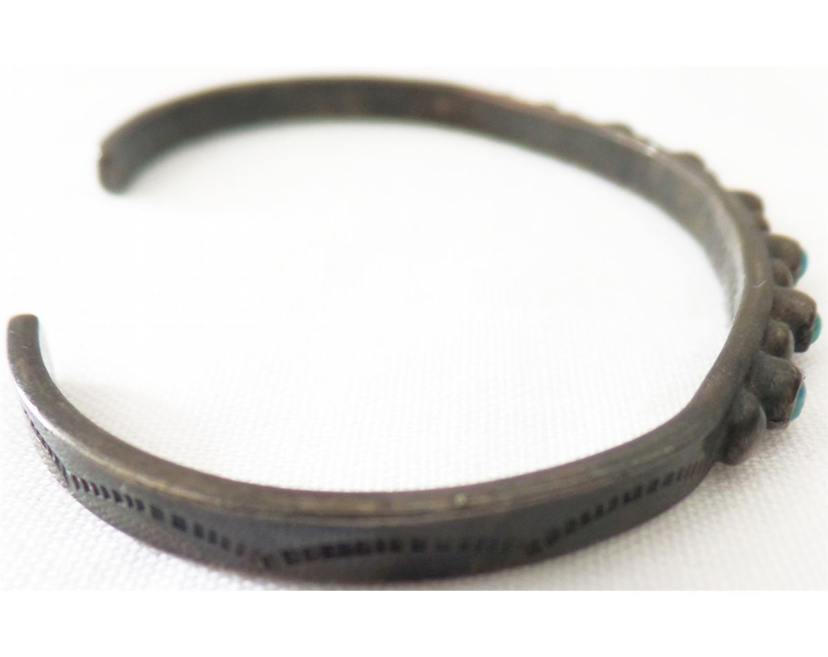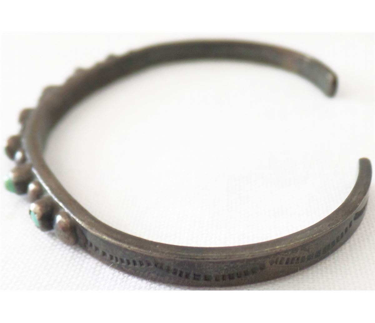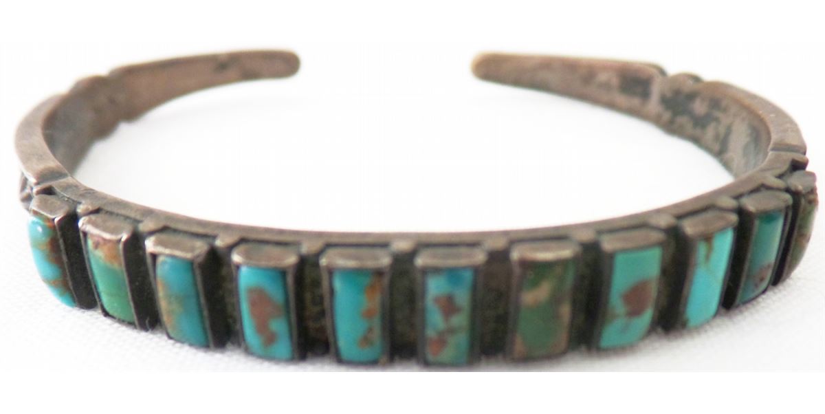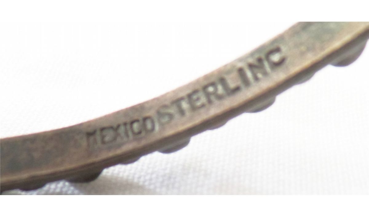 Two approximately 1920's Turquoise and Sterling Silver Cuff bracelets. One is marked Mexico Sterling. Cannot read information on the other because of the patina. The Bracelets openings are 3/4 and 7/8 inches. Approximately 6 inches and 27 grams. Very old green turquoise . These bracelets are from a Doctor's wife's estate in La Mesa. Heavy Patina. Shipping $14.50