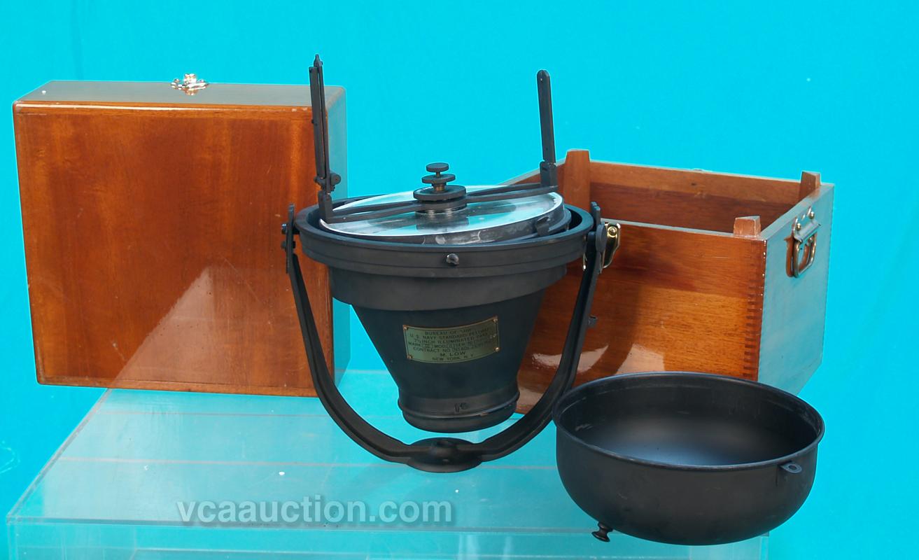 Old U.S. Navy Standard Pelorus 7-1/2" Illuminated Dial Compass, in wood box, M. Low, New York, NY.